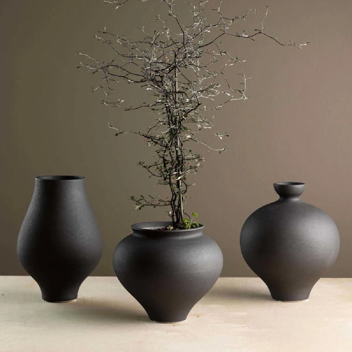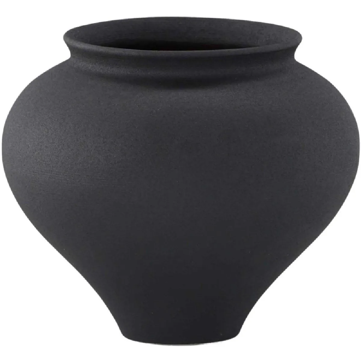 Commentaire vendeur : Informations Techniques : Dimensions : D. 18 x H. 18 cm Matière : Grès Spécificités : Moderne & Déco Vase unicolore Forme arrondie Poids : 1,35 kg Couleur : Noir