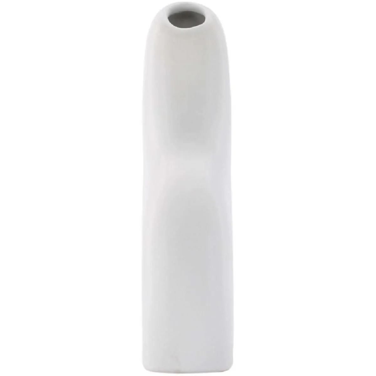 Commentaire vendeur : Informations Techniques : Dimensions : L. 9,4 x l. 4,3 x H. 16 cm Matière : Grès Spécificités : Pratique & Déco Vase design Finition : Glaçage Poids : 0,4 kg Couleur : Blanc
