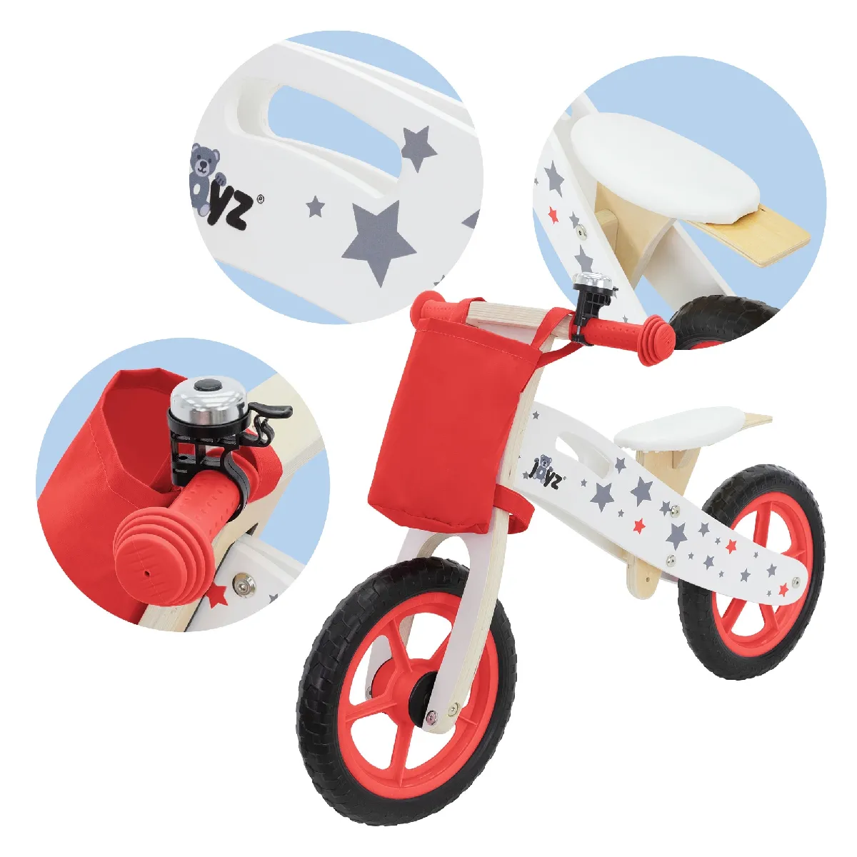 Vélo d'apprentissage en bois - Pneus EVA 11" - Guidon réglable - Design durable - Enfant 2 ans+