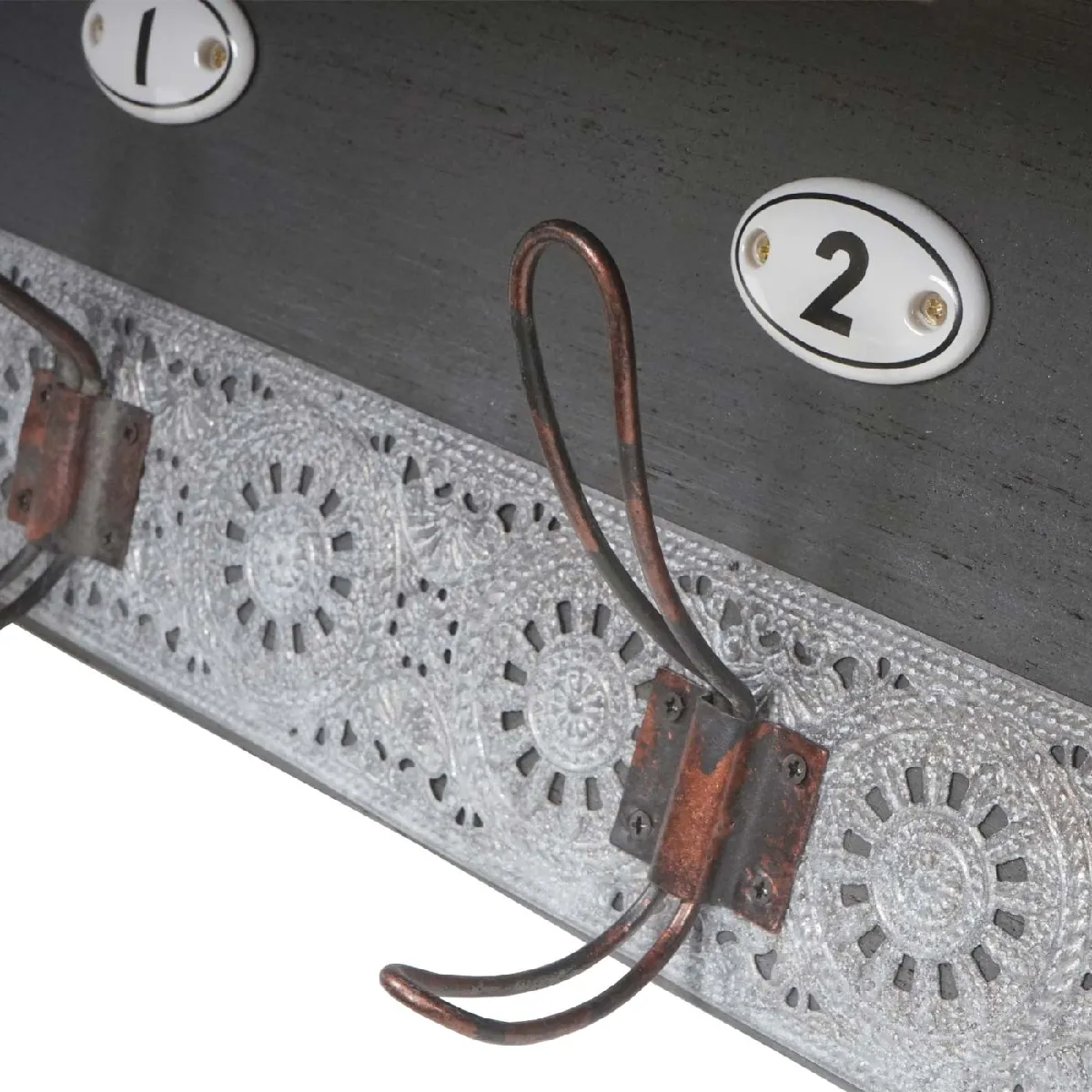 Les étiquettes en céramique aident à identifier chaque crochet pour un rangement clair et accessible au quotidien. La profondeur compacte de 18 cm permet d'optimiser de petits espaces tout en ajoutant un rangement fonctionnel. L'ensemble est livré sans matériel de fixation, laissant le choix des vis et chevilles adaptées à votre mur. Dimensions : 22 × 60 × 18 cm, avec étagère supérieure de 60 × 19 cm pour accessoires.