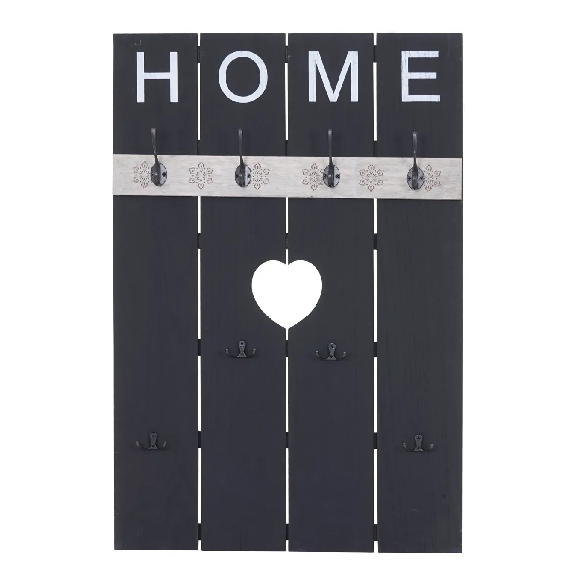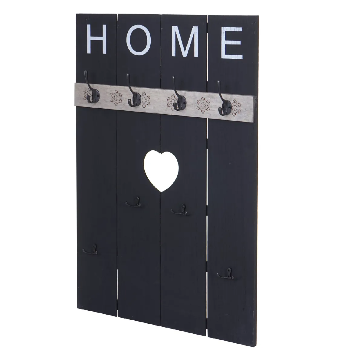 Le panneau mural optimise l'espace du couloir avec 8 crochets répartis en 4 grands et 4 petits pour manteaux, sacs et accessoires. Sa structure en bois de paulownia combine légèreté et stabilité, facilitant l'installation sur mur sans surcharge. Le format compact de 91 x 60 x 8 cm (profondeur avec crochets) permet un rangement accessible tout en conservant une faible saillie, idéal derrière une porte ou dans un passage étroit. Le style shabby gris apporte une touche décorative discrète qui s'intègre aux intérieurs actuels.