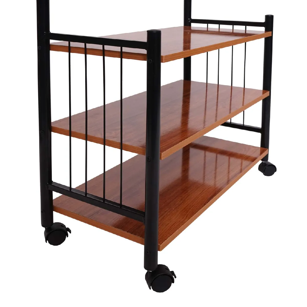 Le format de 186 x 65 x 34 cm s'intègre aisément dans un couloir étroit tout en offrant une capacité de rangement verticale optimisée. Les espaces réguliers entre les étagères facilitent l'aération des vêtements et limitent l'encombrement visuel. Le design sobre s'accorde avec différents intérieurs et la mobilité du portemanteau sur roulettes aide à réorganiser l'espace selon les besoins du quotidien, du tri saisonnier à l'accueil de visiteurs.