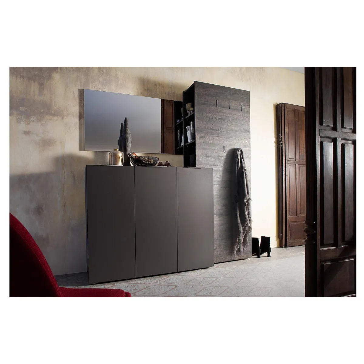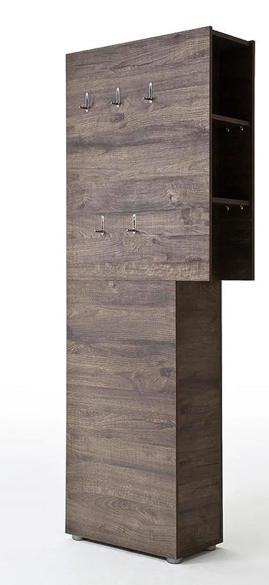 La penderie accueille vestes et manteaux, tandis que les étagères ouvertes facilitent le rangement des chaussures et des petits objets. Les crochets soutiennent écharpes, sacs ou chapeaux pour un accès rapide. Le style moderne et coordonnable avec d'autres éléments de la même série permet d'optimiser le coin entrée selon vos besoins, en conservant une apparence soignée et harmonieuse au quotidien.