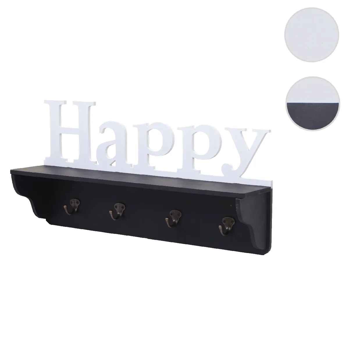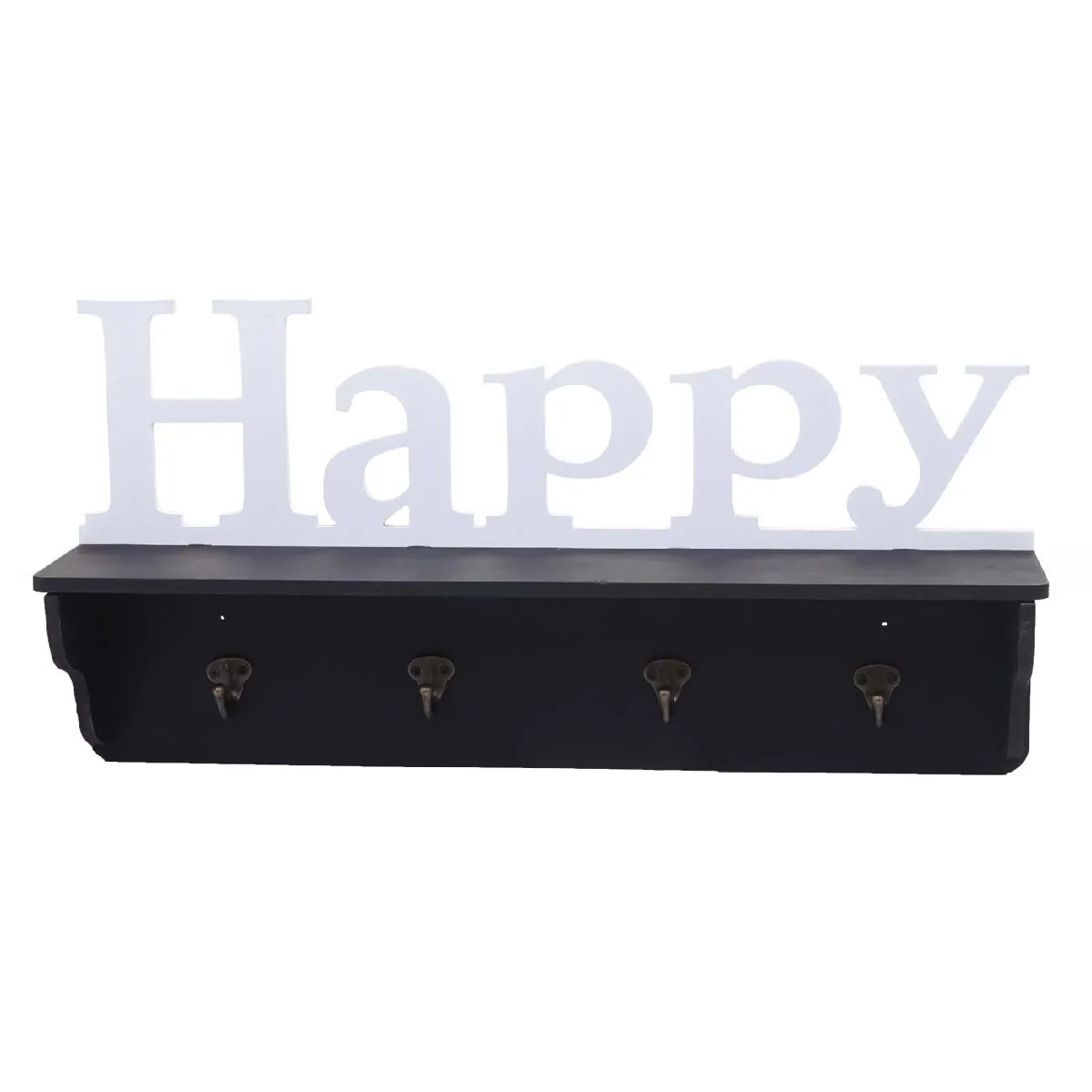 Un format discret de 30 x 60 x 13 cm optimise l'entrée ou le couloir tout en offrant une zone de suspension et de dépose immédiatement accessible. La structure en pin assure une solution murale stable pour les vêtements et accessoires du quotidien, sans encombrer le sol. La tablette supérieure de 60 x 12 cm accueille chapeaux, gants ou petites boîtes, tandis que les 4 crochets massifs supportent vestes, sacs ou écharpes. Le design noir s'intègre facilement à des intérieurs variés et permet un rangement clair, même dans les petits espaces.