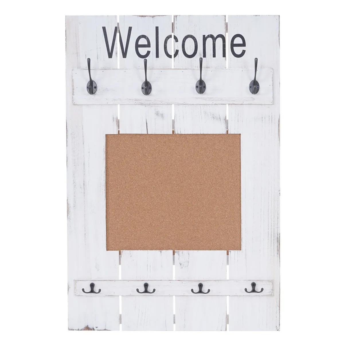 Idéal pour organiser manteaux et accessoires au quotidien, ce portemanteau mural offre huit points d'accroche répartis en 4 grands crochets et 4 petits pour distinguer vestes, sacs et clés. La surface intègre un tableau d'affichage afin de noter messages et rendez-vous à portée de vue. Sa finition blanc shabby s'accorde facilement aux intérieurs romantiques, tout en apportant une solution murale peu encombrante dans un couloir, une chambre ou un bureau.