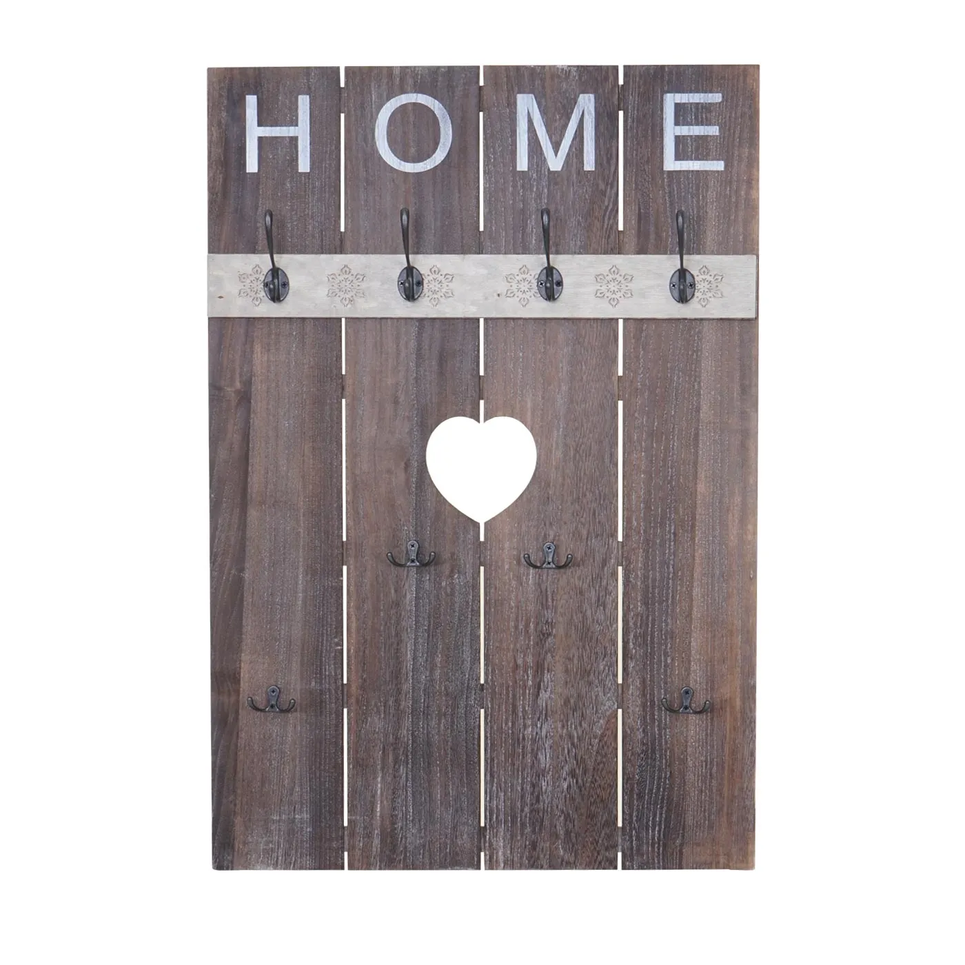 Idéal pour organiser les entrées et chambres, ce portemanteau offre 8 crochets répartis en 4 grands et 4 petits pour accueillir manteaux, sacs et accessoires. Sa structure en bois de paulownia léger et stable facilite la fixation murale tout en assurant une bonne tenue au quotidien. Le style brun shabby apporte une touche décorative discrète et chaleureuse qui s'intègre facilement dans différents intérieurs. Les dimensions compactes de 91 x 60 cm avec seulement 8 cm de profondeur permettent un gain de place dans les couloirs étroits sans gêner le passage.