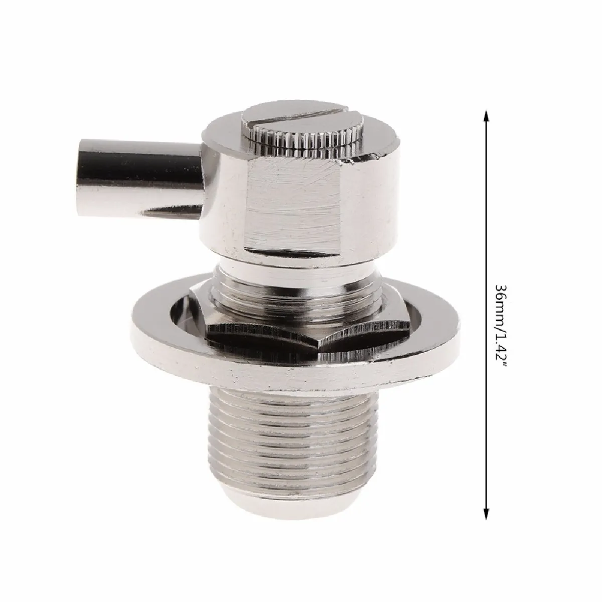 1. Connecteur: SO239 UHF femelle à angle droit 2. Matériau: cuivre, nickelé 3. Conducteur: cuivre, plaqué or 4. Impédance: 50 ohm 5. Dimensions: hauteur: 36 mm / 1,42 pouces 6. Quantité: 1 pièce