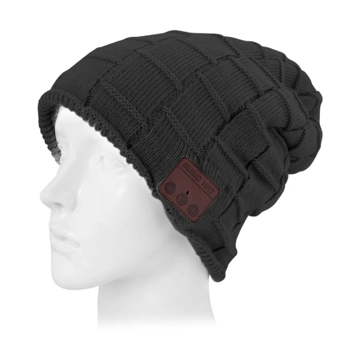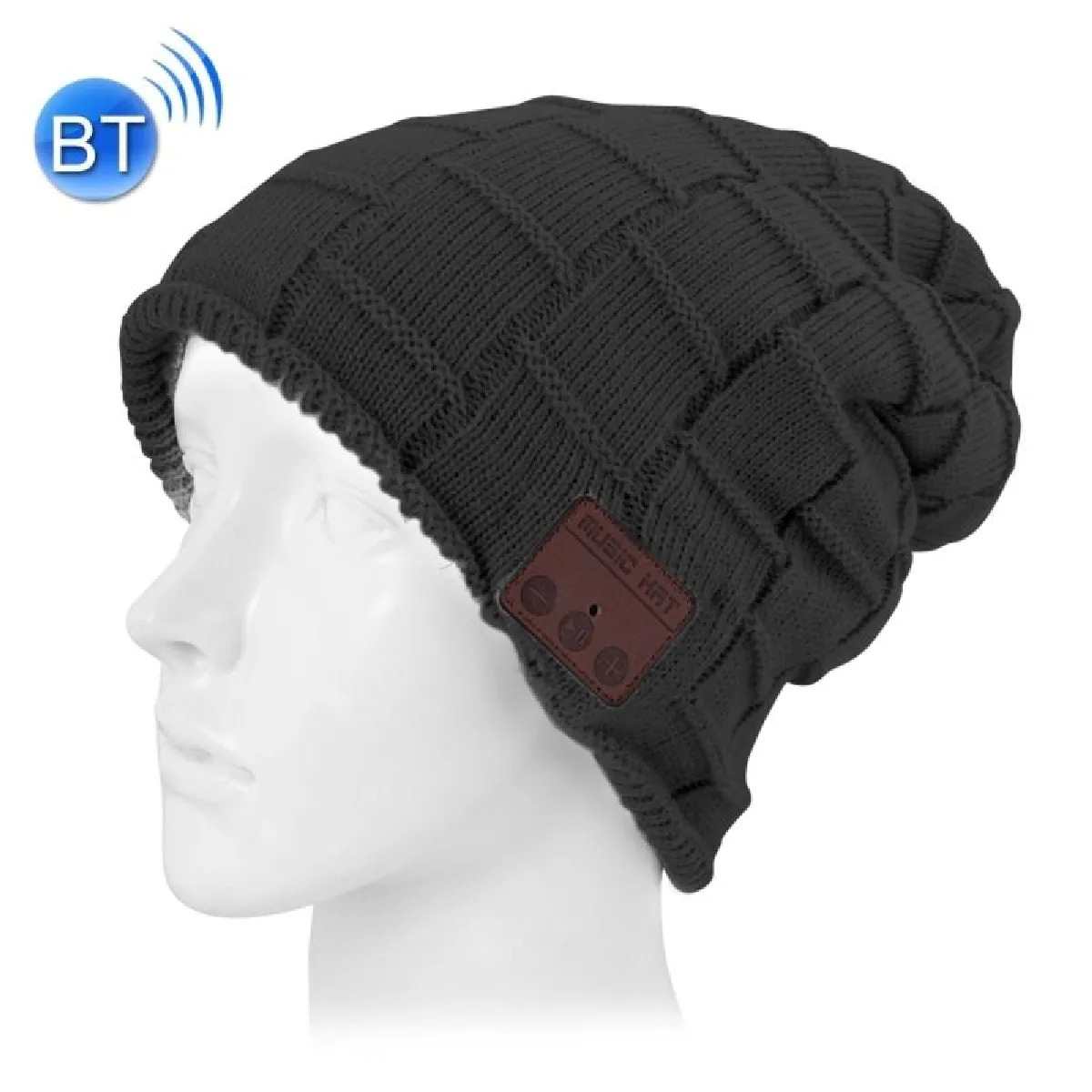 Bonnet Tricoté Bluetooth V4.1 Motif Carré 10 Mw Microphone Charge USB Noir YONIS