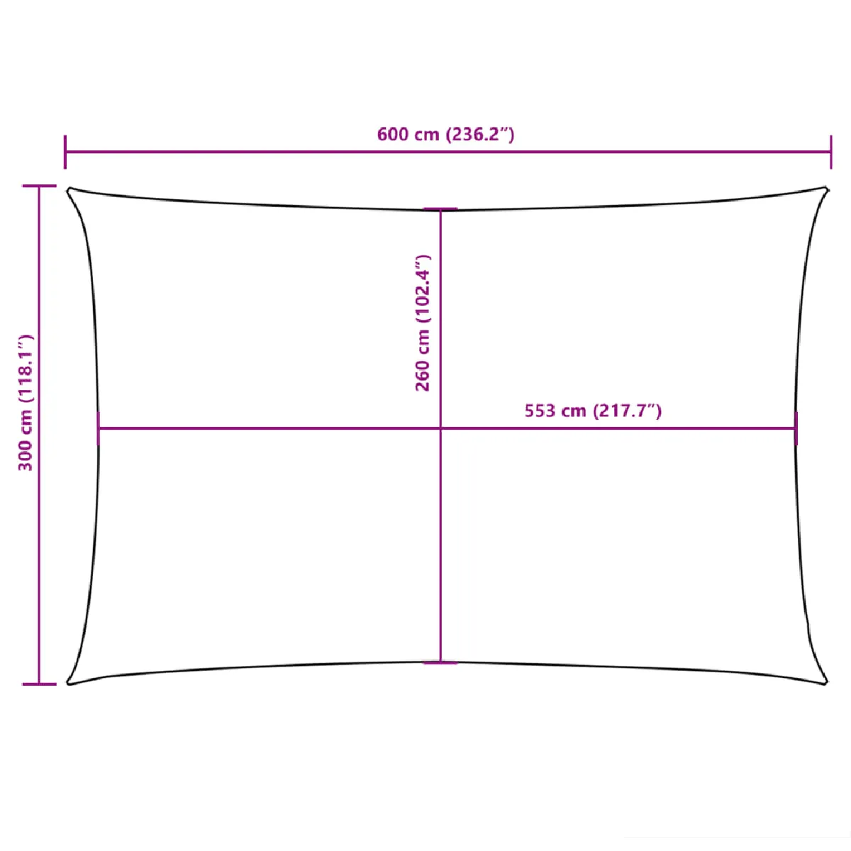 Voile de parasol rectangulaire - 3x6 m - Tissu Oxford - Résistant à l'eau - Protection UV
