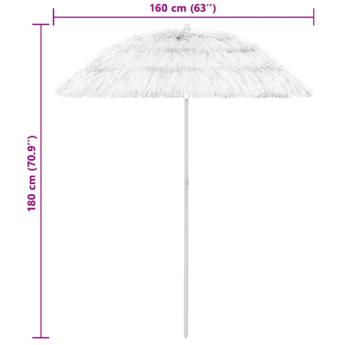 Parasol de plage - Polyester anti-UV - Inclinable - Style Hawaï - Blanc - 240 cm