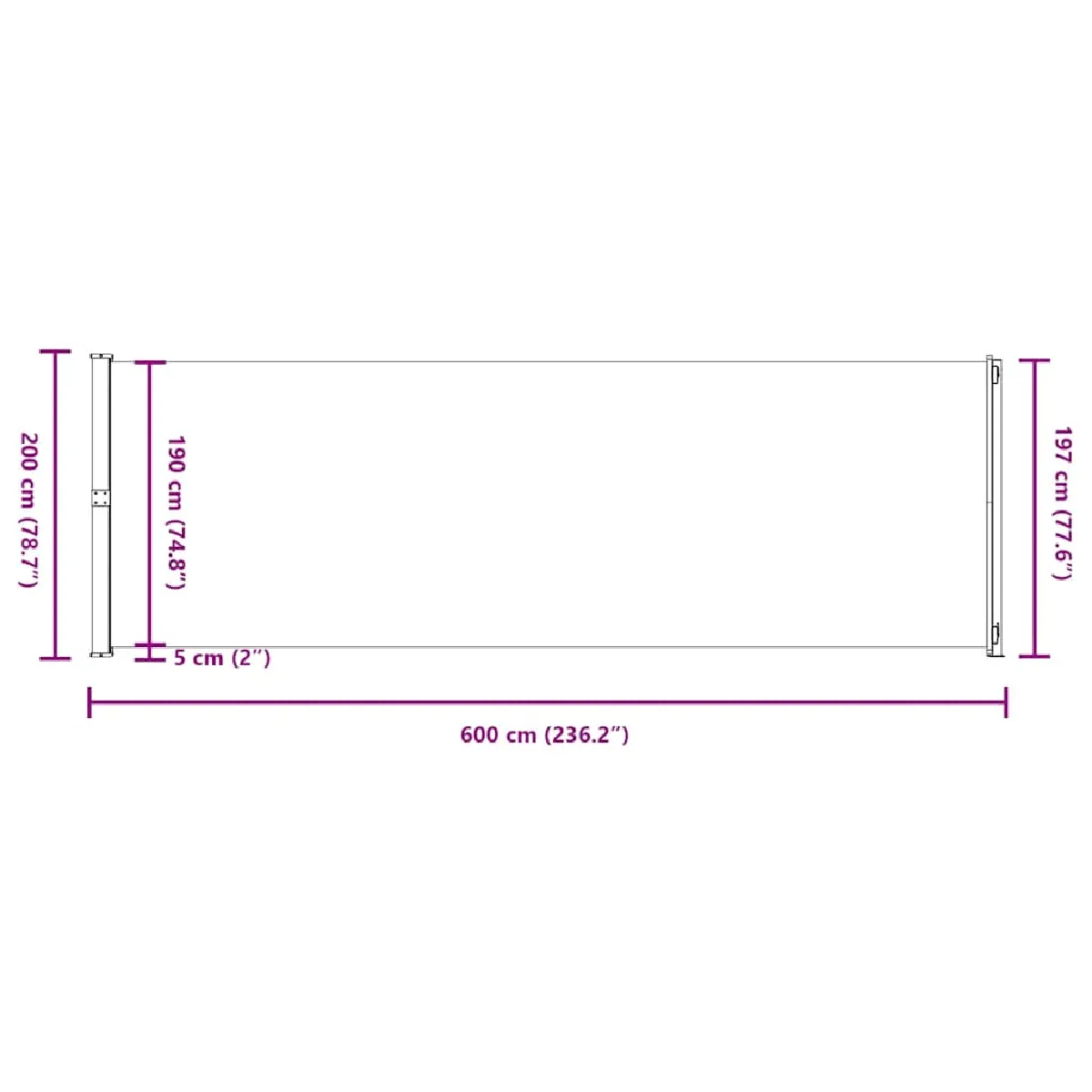Auvent latéral rétractable - Tissu polyester - 200x600 cm - Crème