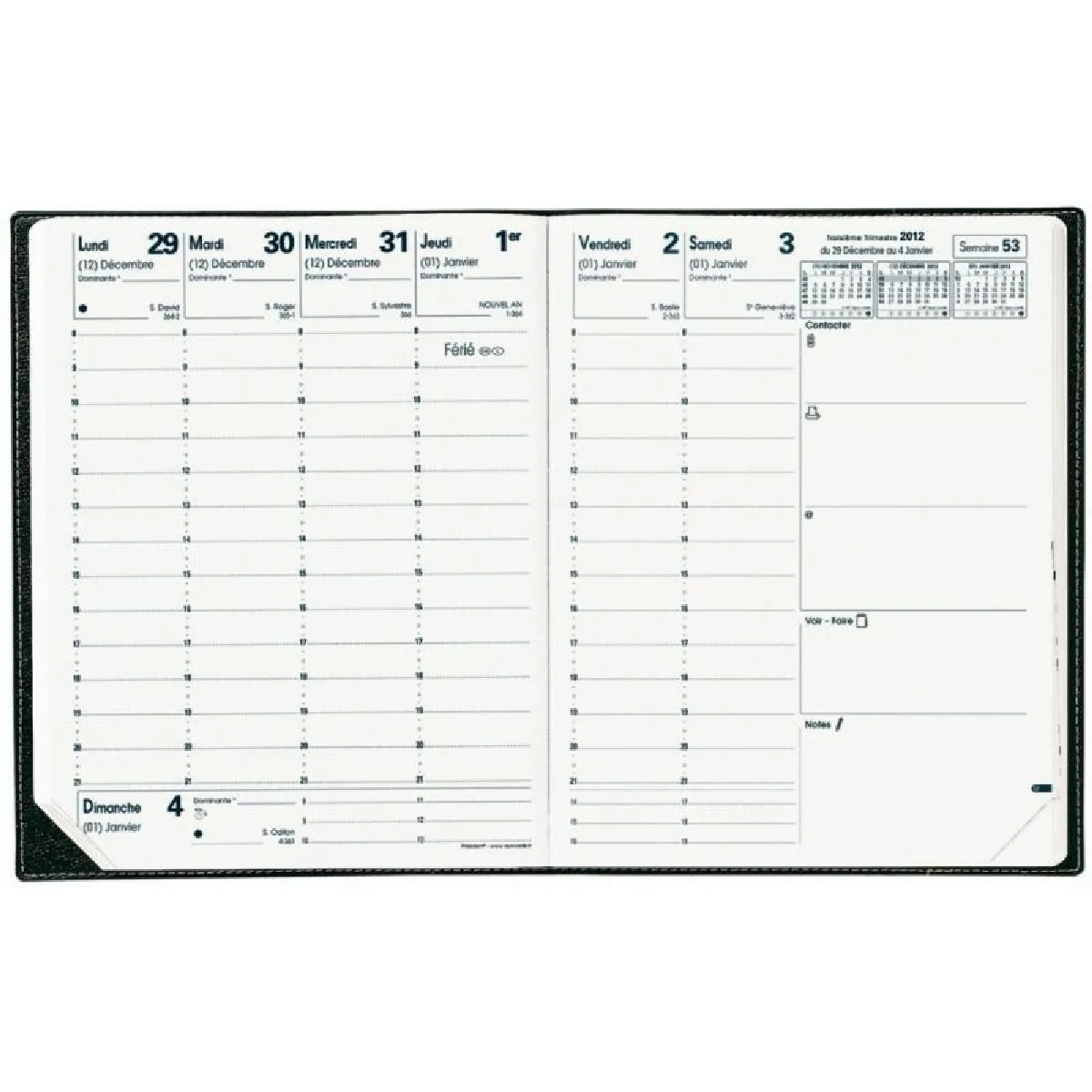 Quo Vadis - Quo Vadis Agenda Président + Répert. Couv Plast Grainée noir 21 x 27 cm