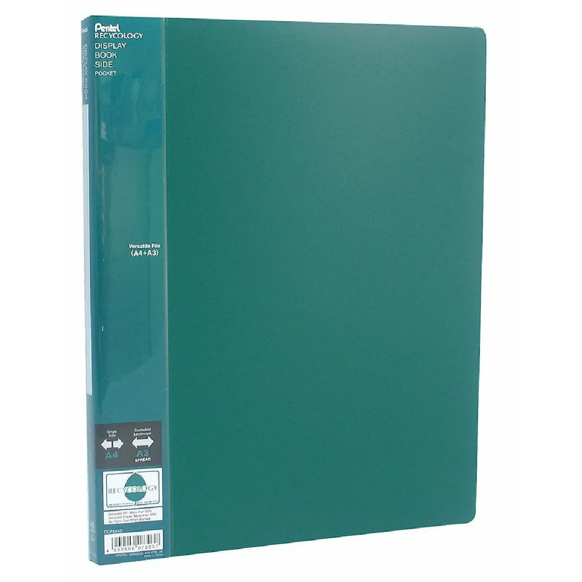 Pentel - Pentel This folder is made from at least 50% recycled material. the high quality product is maintained. All these products are made to first-class quality and from the best materials. Pentel Recycology products have a leaf logo green which says ``A4 Recycology Display Book. Permet d'afficher les double page se répand des feuilles uniques