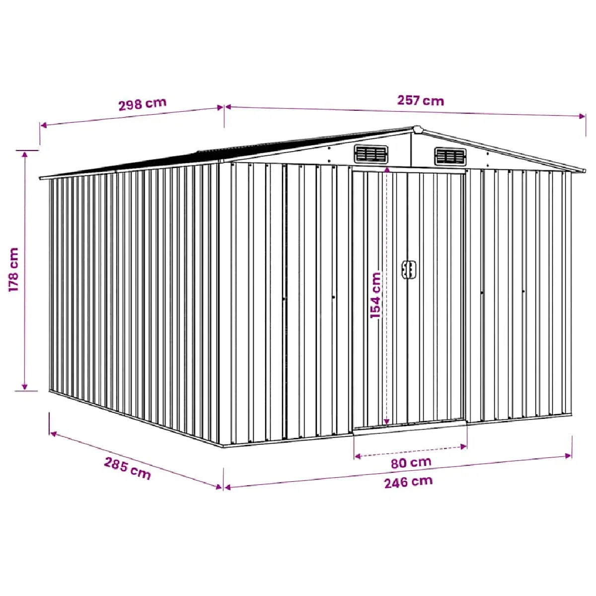 Abri de jardin - Acier galvanisé - Ventilation optimisée - Portes coulissantes frontal