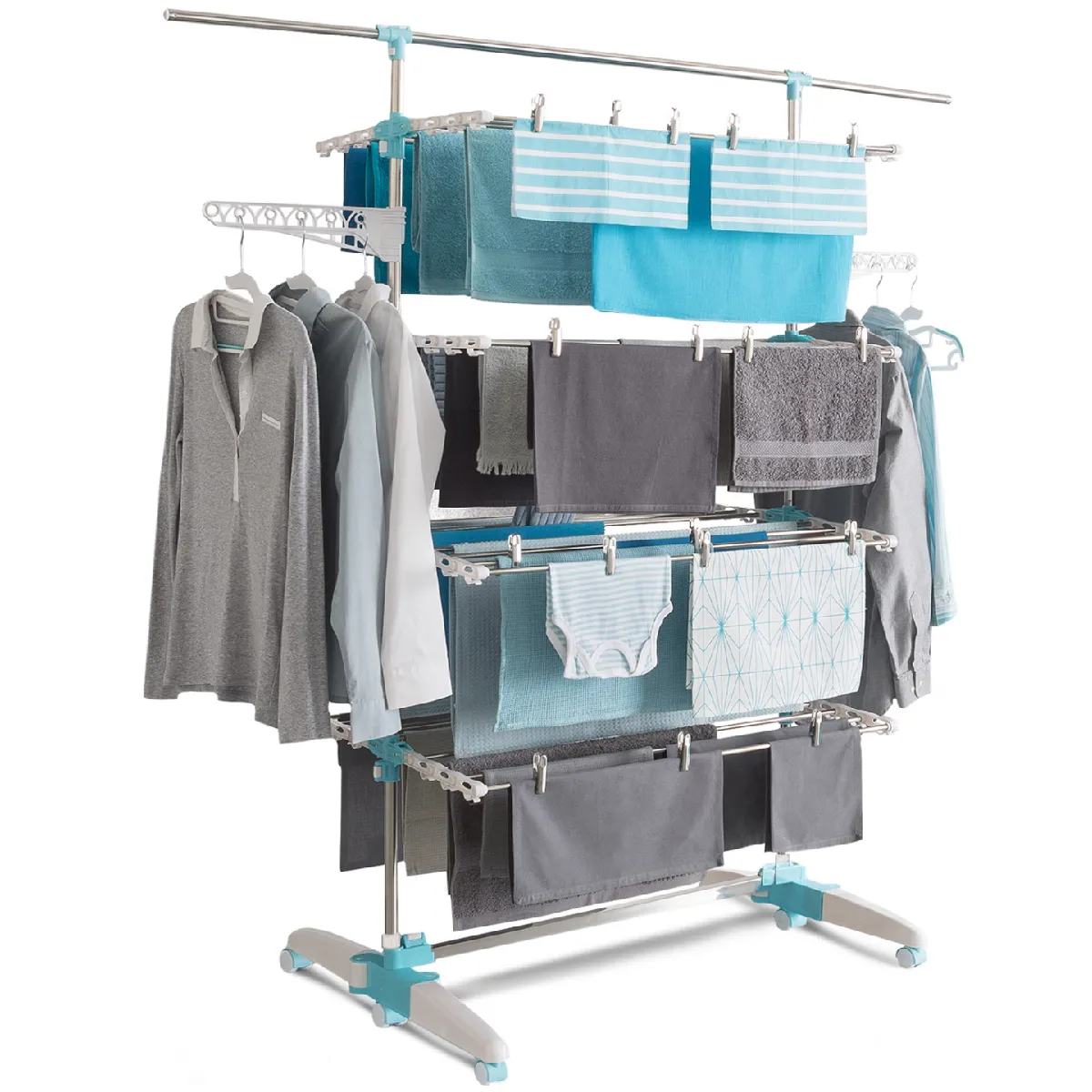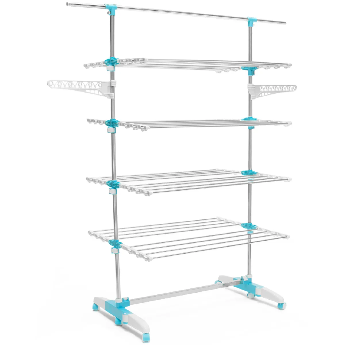 Tour à linge XXL 30m - 4 niveaux - Accessoires optimisés pour séchage - Roulettes pour mobilité facile