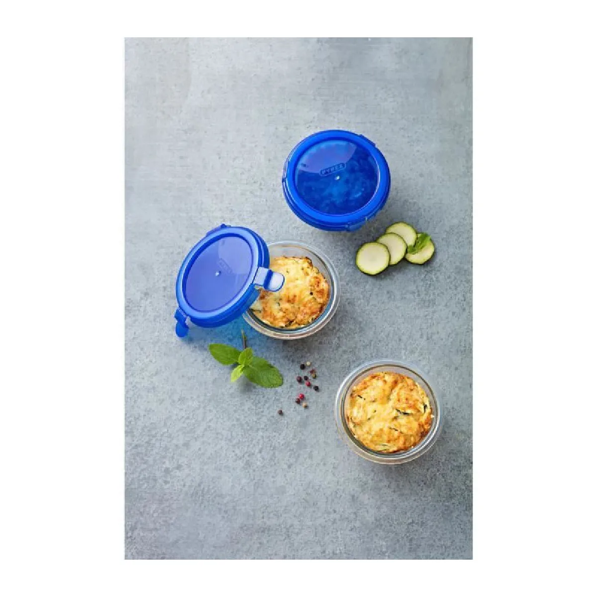 La solution pratique pour préparer, stocker et emporter vos repas du quotidien. Le récipient en verre résistant conçu pour la cuisine et la conservation passe au micro-ondes sans le couvercle, pour réchauffer simplement. Le couvercle bleu à fermeture hermétique et étanche aide à limiter les fuites pendant le transport et à préserver les saveurs au réfrigérateur. Sans poignées, les éléments de la même gamme s'emboîtent pour un rangement facile dans vos placards, optimisant la place disponible.