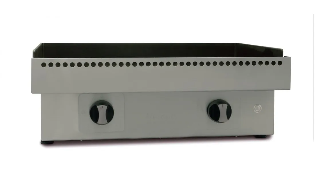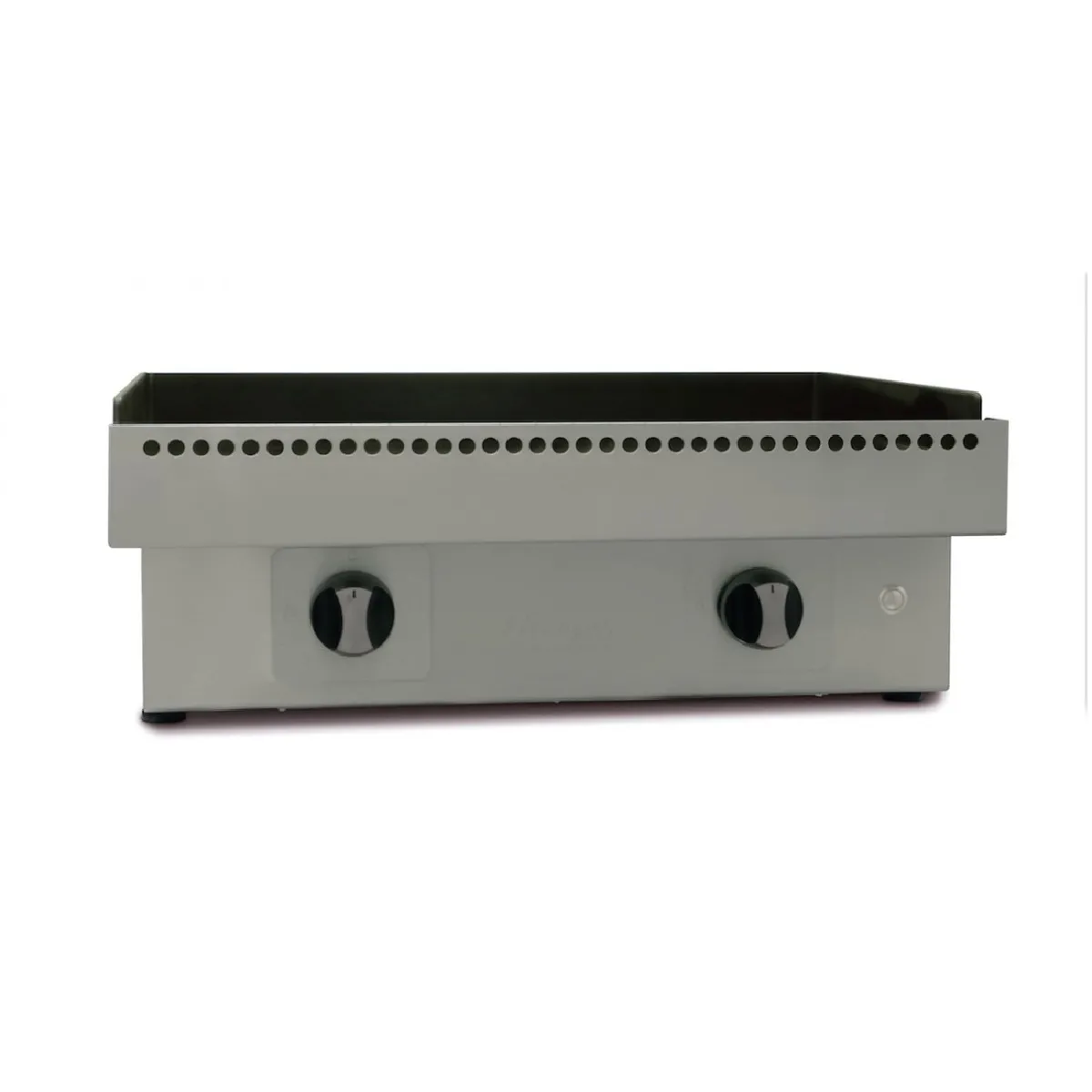 Plancha d'extérieur - gaz - 2 brûleurs - plaque 6 mm - thermostat réglable - bac récupération jus