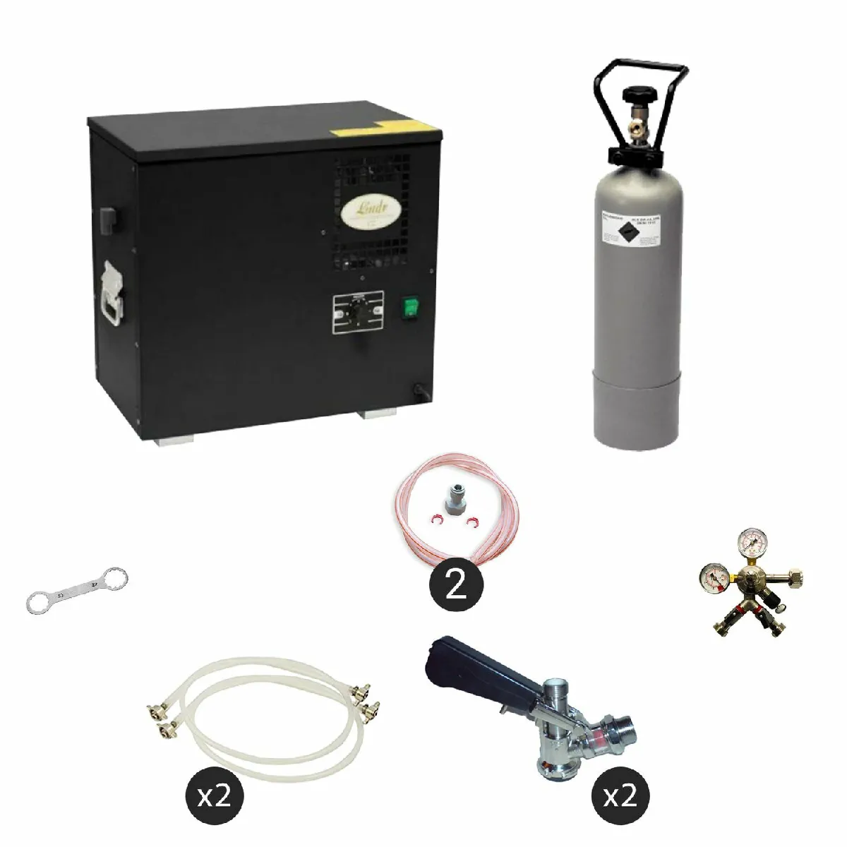 Tireuse à bière réfrigérée - 2 sorties - Débit 40 L/h - Prête en 8-10 min - Refroidissement humide - Technologie éco-efficiente - 230 V, 50 Hz, 292 W