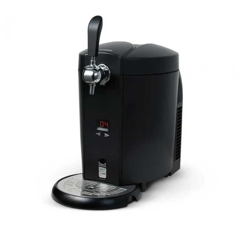 Pompe à bière domestique compatible fûts 5 L BeerTender - 65 W - Écran LCD - Température réglable 4 à 12 °C - Système de refroidissement thermoélectrique - Bec unique - Réceptacle amovible avec grille inox