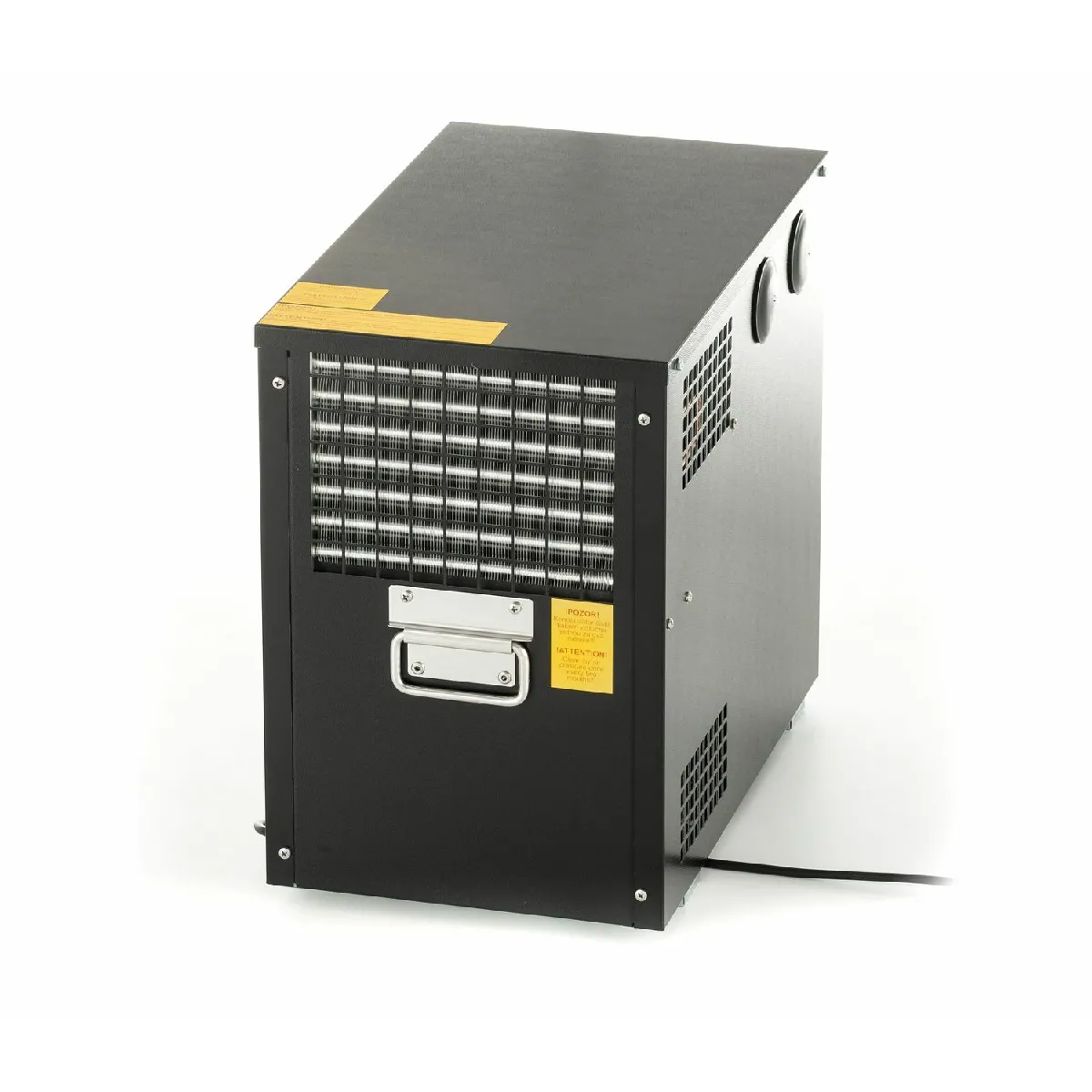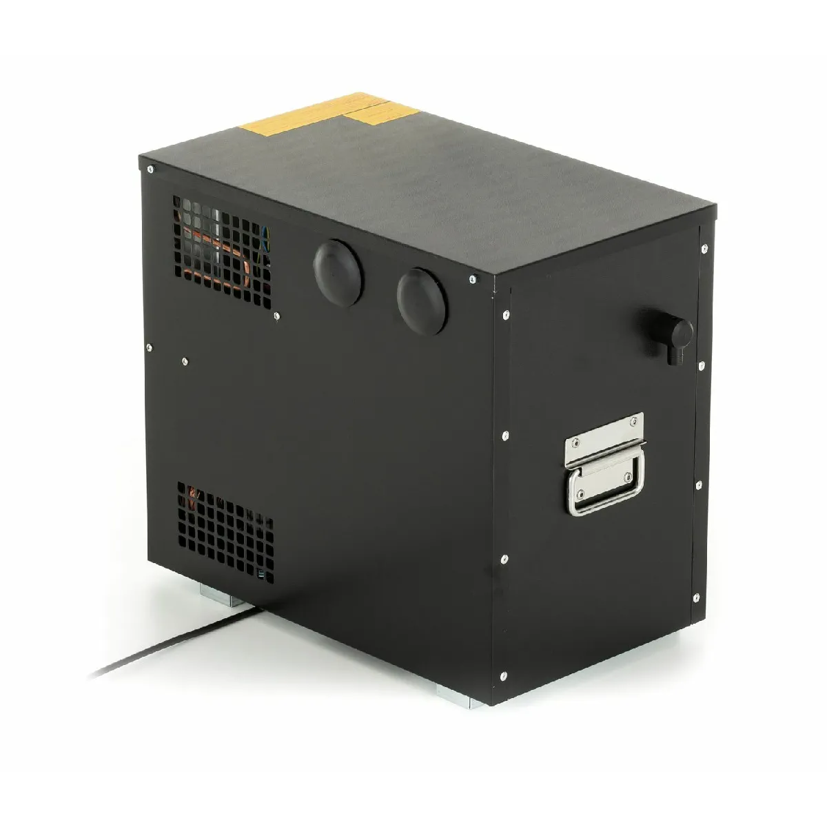 Le refroidissement humide assure un tirage stable pour des verres régulièrement à bonne température, même en service soutenu. Avec ses deux sorties indépendantes et deux boucles de refroidissement de 8 m, cette unité gère aisément deux bières en parallèle. Son format 44 × 27 × 44 cm et 18 kg en métal se place discrètement sous le comptoir pour libérer l'espace de service. Le réservoir d'eau de 11 litres stabilise la température et limite les variations lors des pics de débit. Prête en 8 à 10 minutes, elle délivre jusqu'à 40 L/h à 10 °C TD, pour un service fluide et régulier tout au long de l'événement.
