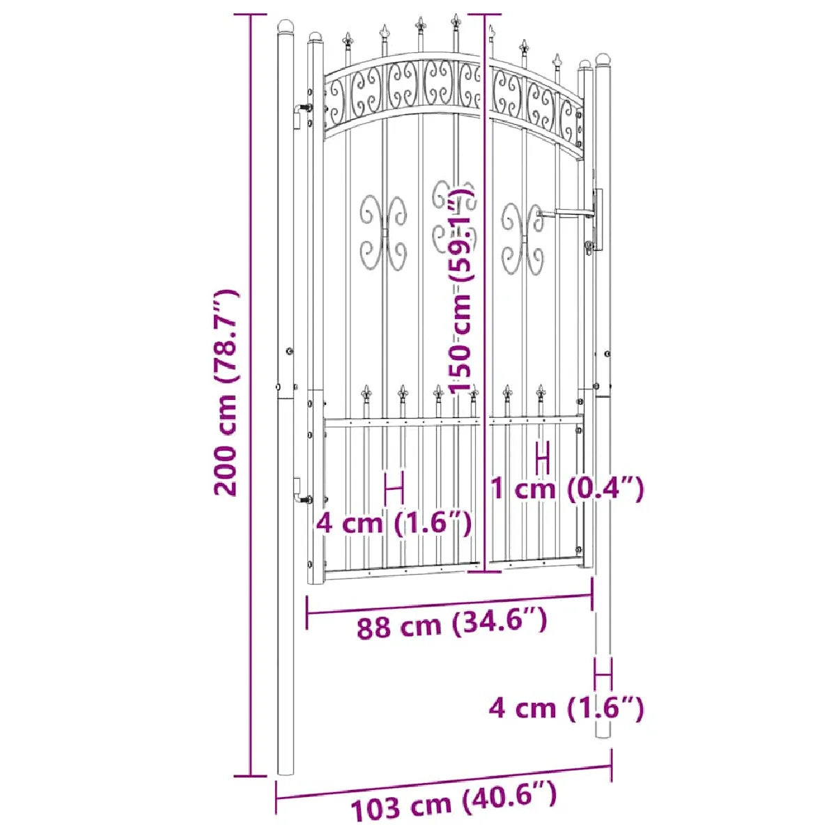 Ce portail de clôture élégant et de haute qualité est revêtu de poudre pour le protéger contre la rouille et la corrosion, ce qui en fait un point d'entrée idéal pour la clôture de votre jardin ou de votre terrasse.