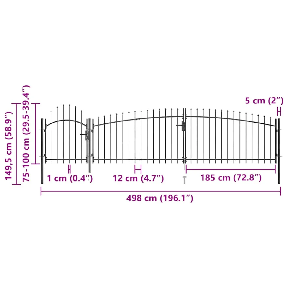 Portail de jardin - Acier enduit de poudre - Dimensions 5 x 1,5 m - Noir - Verrouillable