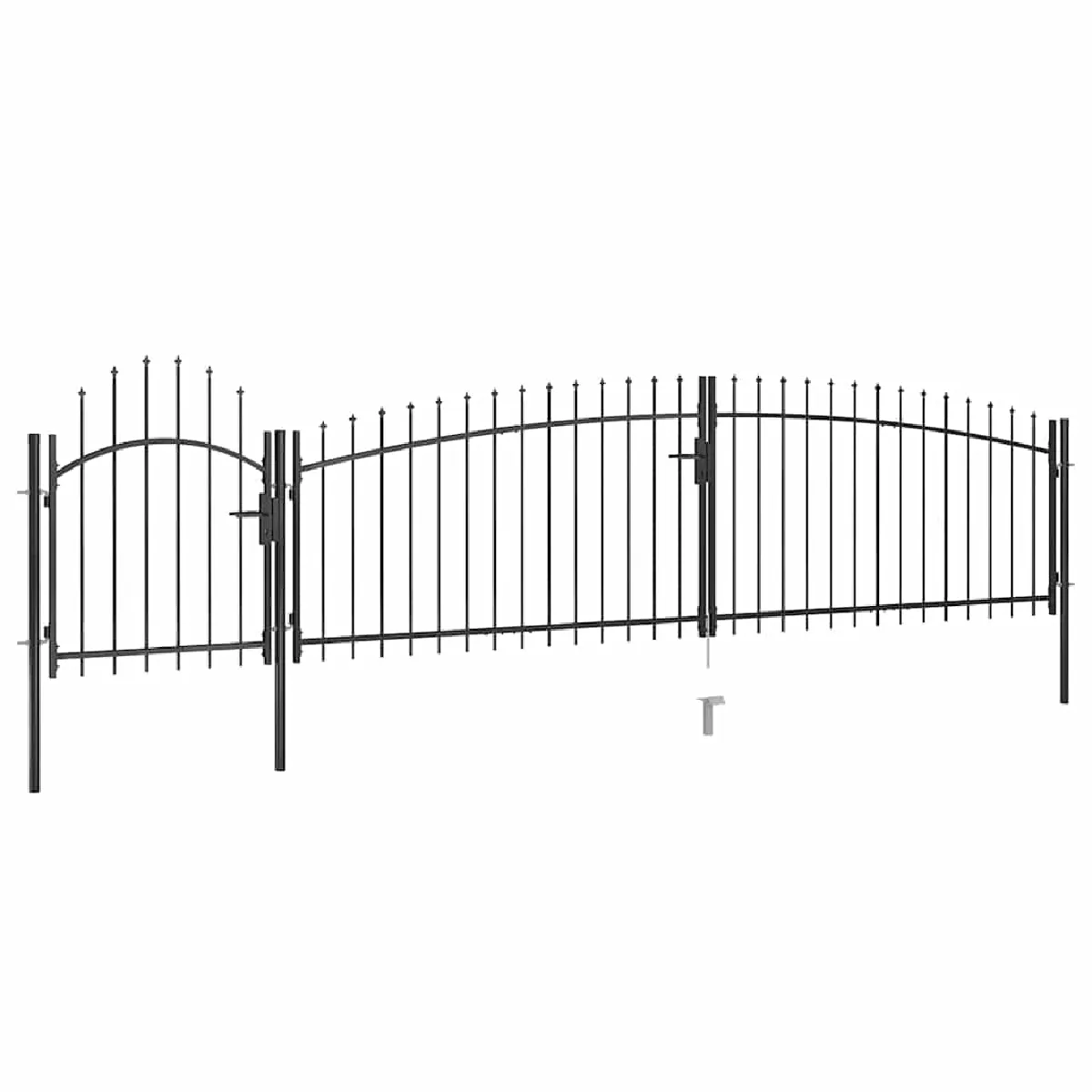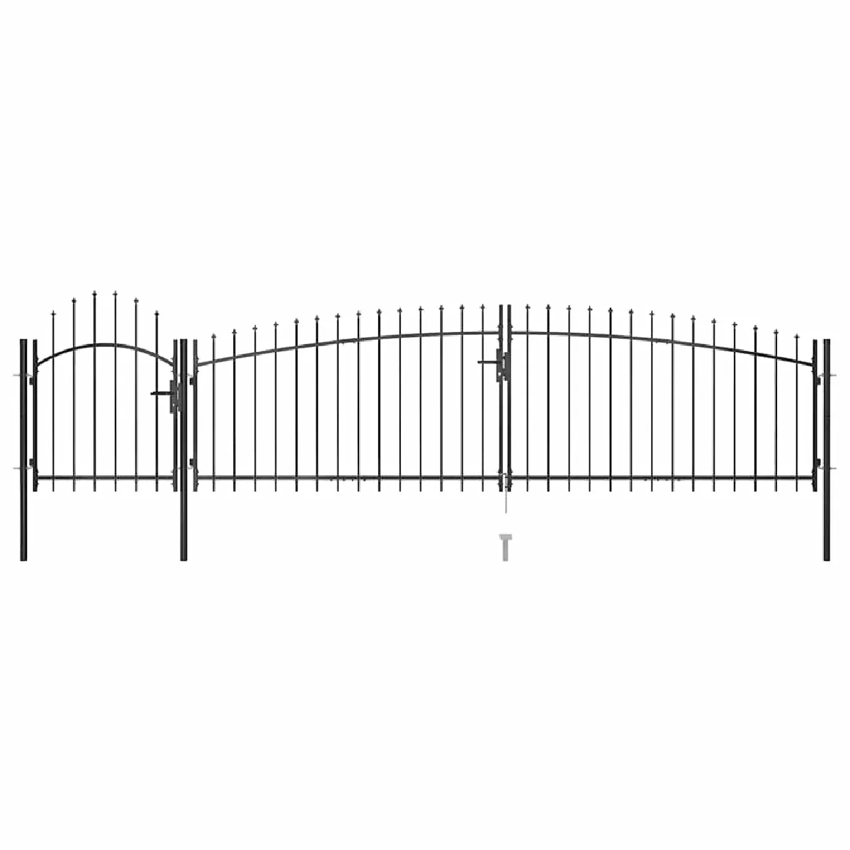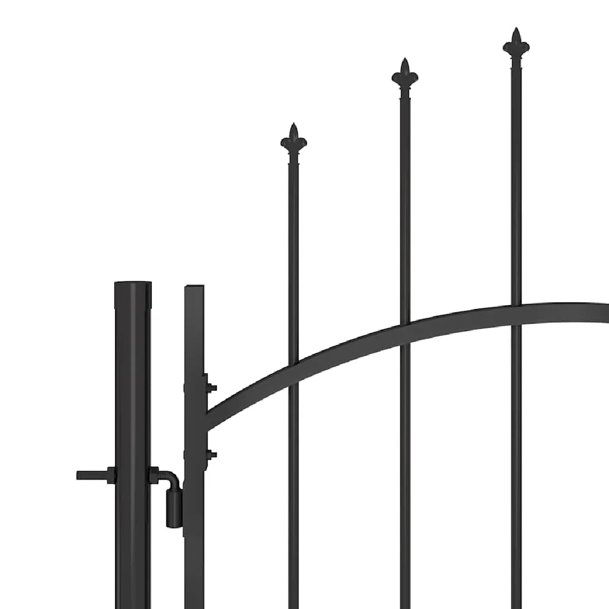 Grâce à son design élégant et à sa forme arquée, ainsi que de solides entretoises horizontales pour renforcer le cadre, notre portail de jardin offre un haut degré de sécurité, formant une entrée fabuleuse sur votre propriété. Le portail est fabriqué en acier enduit de poudre, et également enduit de poudre contre la rouille et la corrosion. De plus, ce portail de clôture est équipé dun système de verrouillage et est livré avec trois poteaux solides ainsi que des charnières robustes pour une installation facile.