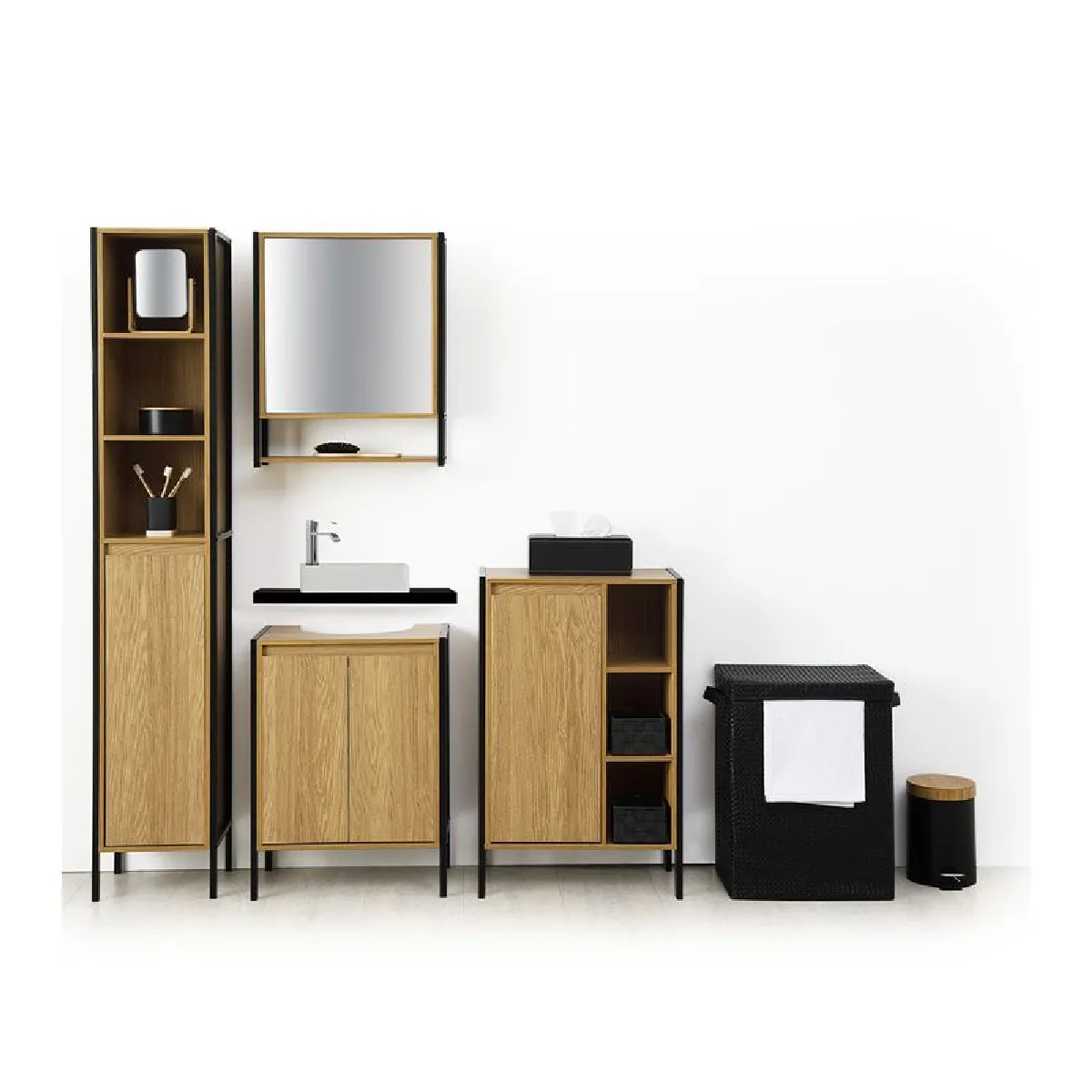 Poubelle de salle de bain - Capacité 3 L - Métal et bambou - Système à pédale - Entretien facile