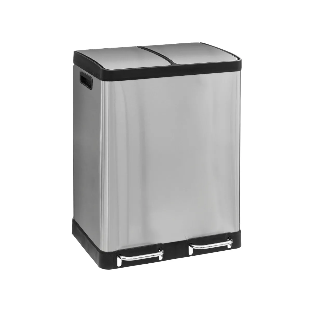 Poubelle de tri - Inox - 2x30 L - Deux pédales - Seaux amovibles - Poignée arrière