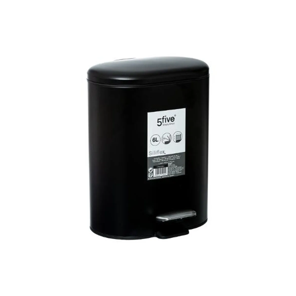 La marque 5Five® propose une large gamme de produits astucieusement pensés et designés pour tous les jours.Pour se simplifier la vie à la maison : à la cuisine ou dans la salle de bain, au garage ou à la cave, dans les placards...La marque d'objets intelligents qui améliorent le quotidien !Dimensions et Caractéristiques•Dimensions : L. 24.2 x P. 15.5 x H. 30.5 cm•Hauteur de la poubelle ouverte : 46 cm•Capacité : 6 litres•Poids : 1.165 kg•Matière de la structure : Métal. Acier inoxydable•Matière du seau : PP - Polypropylène•Système d'ouverture ; Pédale•Inclus : Seau amovible. Poignée arrière•Garantie : 2 ansCouleur : NoirDimensions (L x l x H) : 24,2 x 15,5 x 30,5 cmGarantie : 2 ansMarque : FIVEMatière(s) : Métal et Acier inoxydablePoids : 1,16 kg