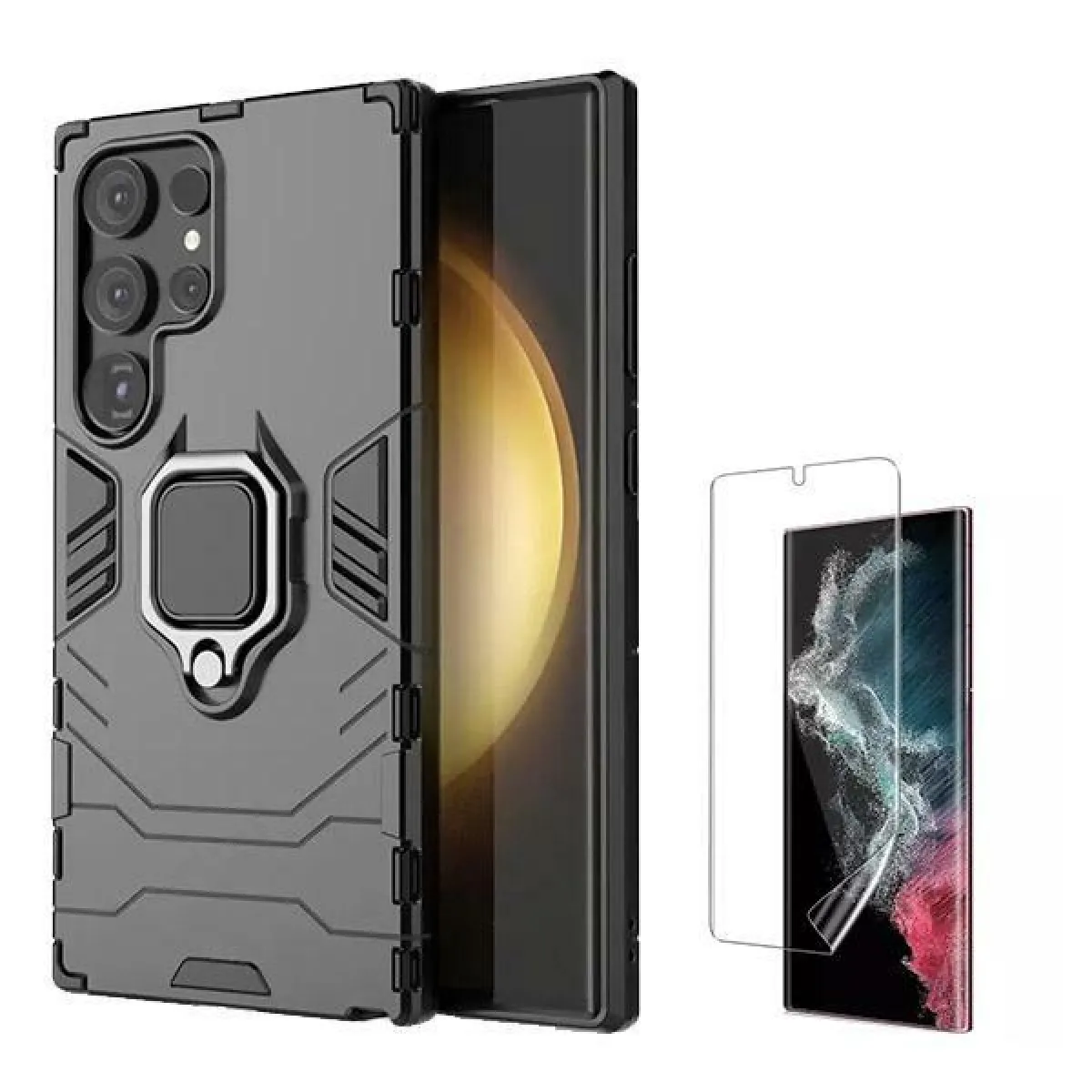 Le film gel Full Cover est complètement transparent, ne crée pas de volume, compatible avec la plupart des coques du marché. Couvre les bords de votre téléphone portable. Protège contre les rayures et les éraflures. Fabriqué en TPU tactile, il ne nuit pas à la sensibilité. Protégez l'intégralité de votre téléphone portable. Housse anti-impact Military Defender 3X1, fonction support, fonction support de voiture et fonction support d'anneau.
