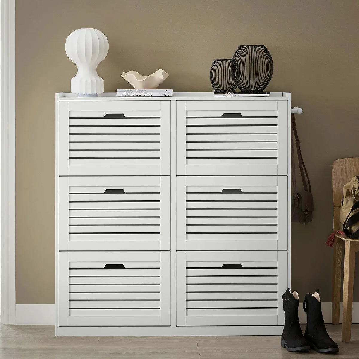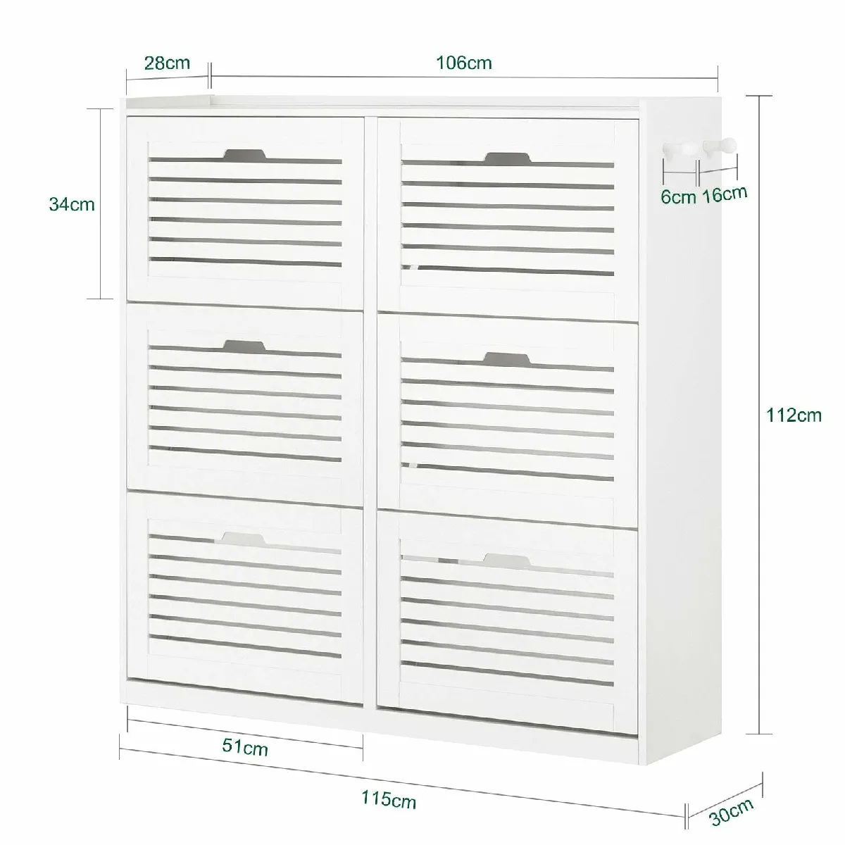 SoBuy FSR145-W Meuble à Chaussures à 6 abattants avec 2 Crochets.