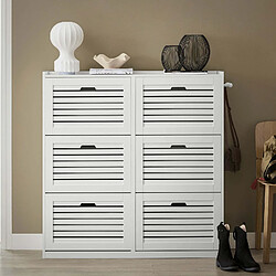 Meuble à chaussures - 6 abattants - Bois hévéa - MDF - Blanc