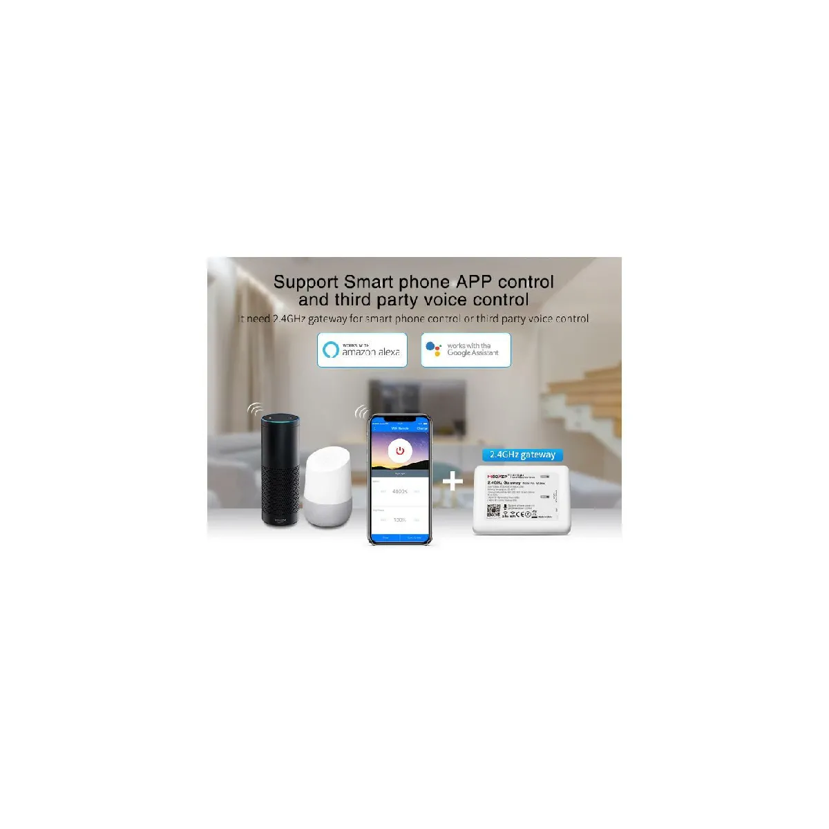 - Contrôle CCT : réglage du blanc chaud au blanc froid et de la luminosité