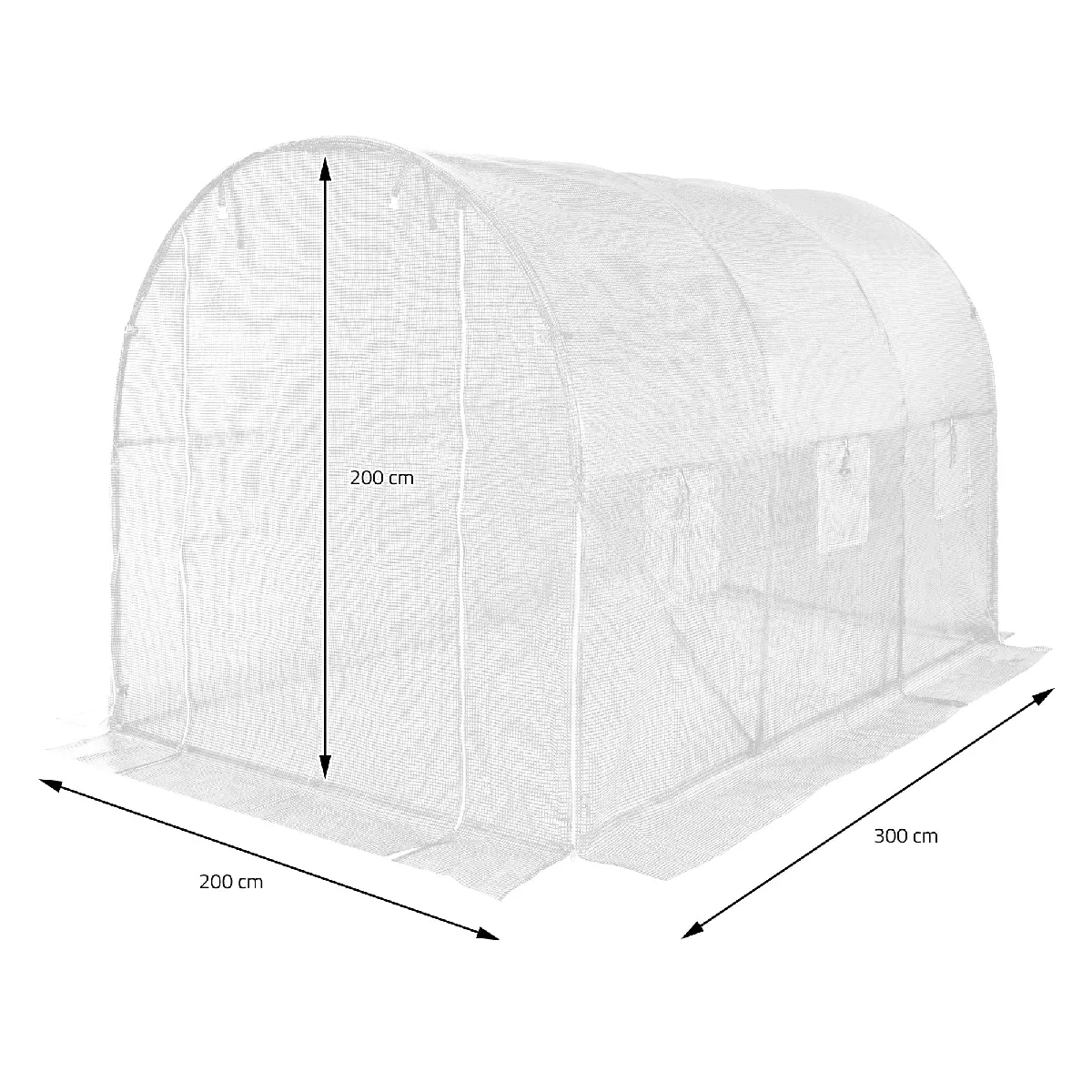La culture de légumes, fleurs et herbes gagne en régularité grâce à une protection fiable contre la pluie, le vent et le gel. L'enveloppe translucide en film PE à mailles 135 g/m² crée un climat intérieur chaud et humide qui favorise la germination et la croissance. Sur 6 m², l'espace est suffisant pour organiser des rangées de semis ou des massifs compacts, tout en conservant une exposition lumineuse homogène. La structure de 300 x 200 x 200 cm offre une hauteur d'élevage confortable pour les tâches quotidiennes et l'entretien. Les ouvertures réglables permettent une ventilation précise selon la saison et limitent la stagnation d'humidité.