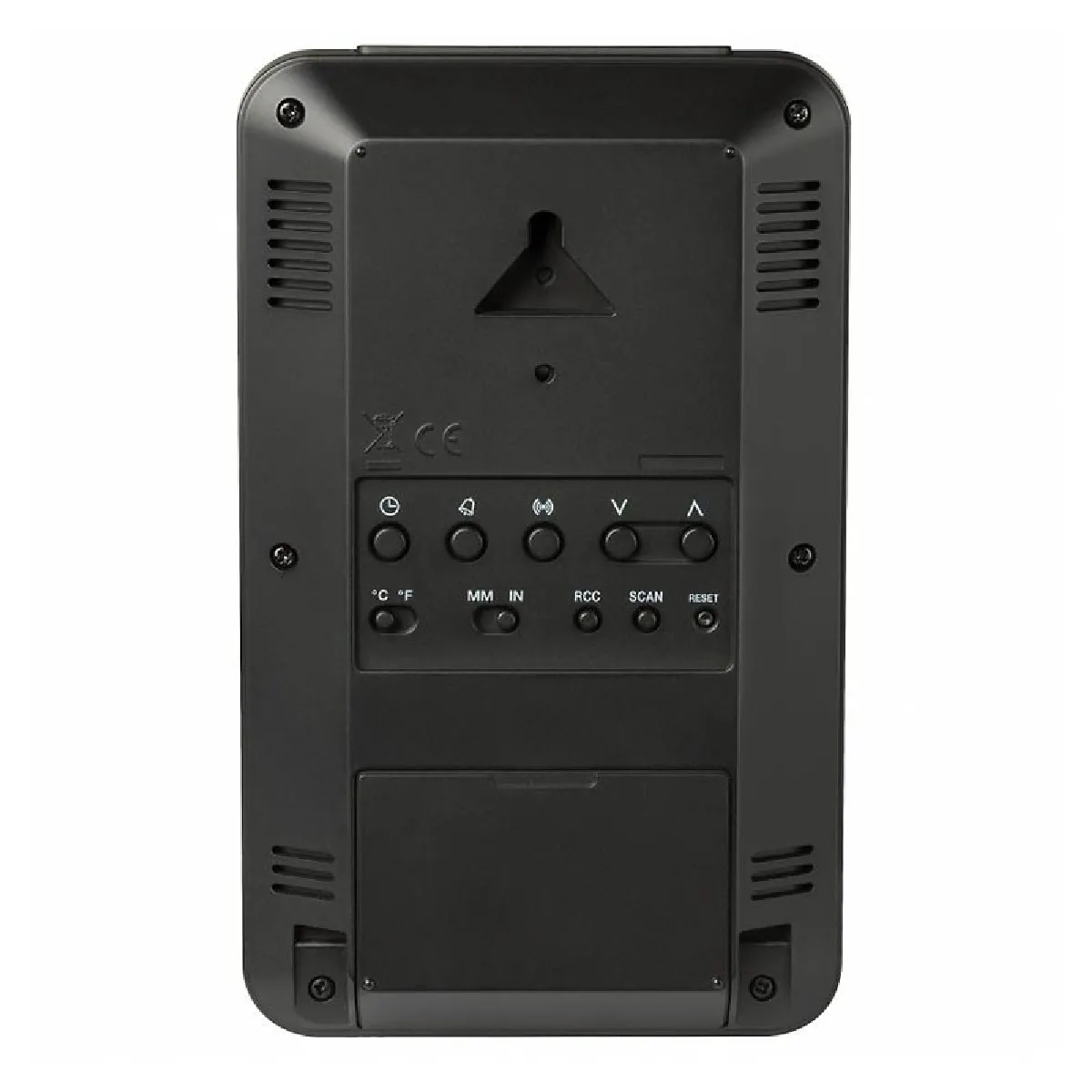 La station de base mesure la température et l'humidité intérieures, le pluviomètre mesure également la température extérieure. Sur l'écran vous pouvez lire la pluviosité pour une période sélectionnable (heure, jour, semaine, mois). L'affichage contient aussi un histogramme graphique.