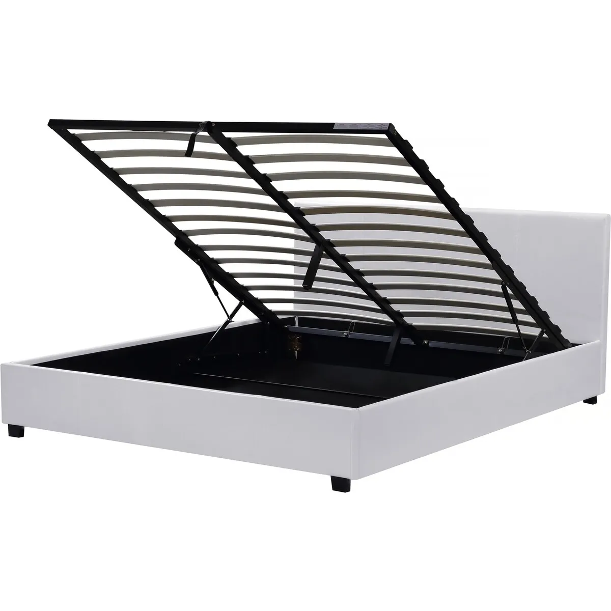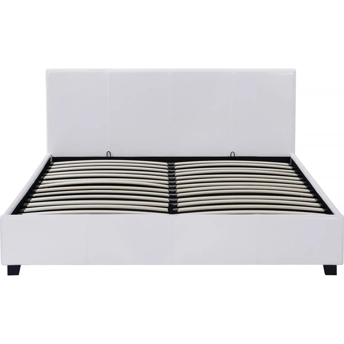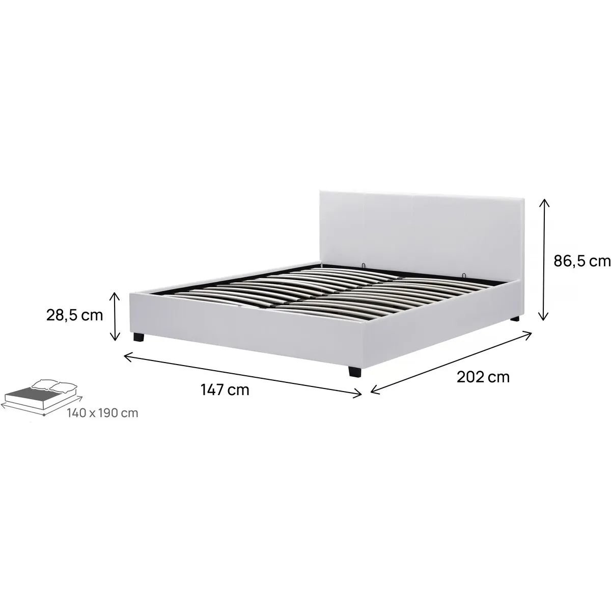 Commentaire vendeur : Lit coffre double "Carla" - Blanc - Coffre de rangement en toile - Dimensions lit : 203 x 147 x 86 cm - Dimensions matelas : 140 x 190 cm - Sommier inclus
