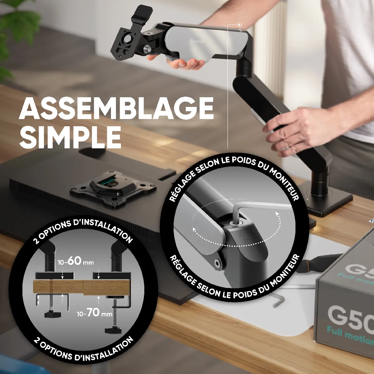 BRAS ARTICULÉ POUR ÉCRAN | ONKRON G50-B - bras pour ecran 13-32 pouces et poids 2-8 kg | Pied d'ecran PC convient VESA de 75x75 et 100x100 mm | Bras PC peut supporter plus de 50000 cycles de charge