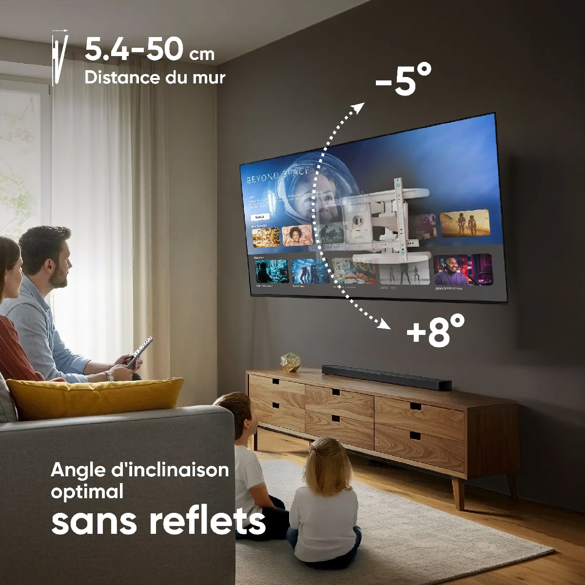SUPPORT TELE MURAL BLANC | Bras pour television mural a des nombreuses options de réglage | Fixation tele murale réduire le risque de chute de l'écran | Porte TV mural permet de libérer l'espace sous votre TV | Utilisez notre support mural TV 40 pouces - support mural TV 75 pouces pour protéger l'accès des enfants et des animaux à la télévision