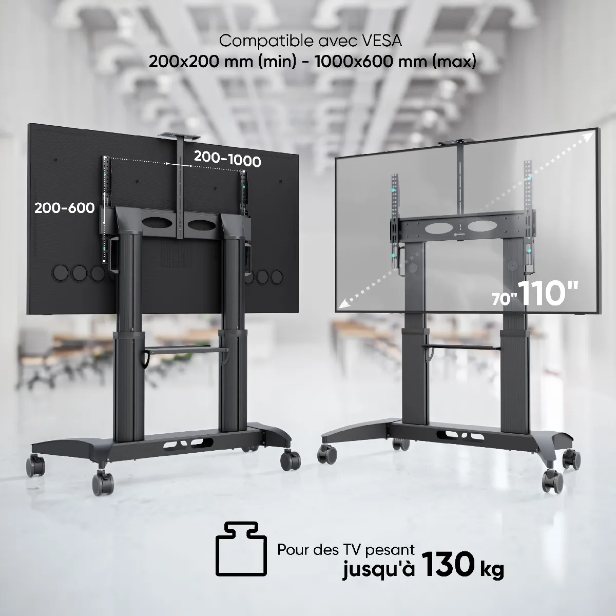 Support roulette aluminium - VESA 200x200 à 1000x600 - Pour écrans 70" à 110"