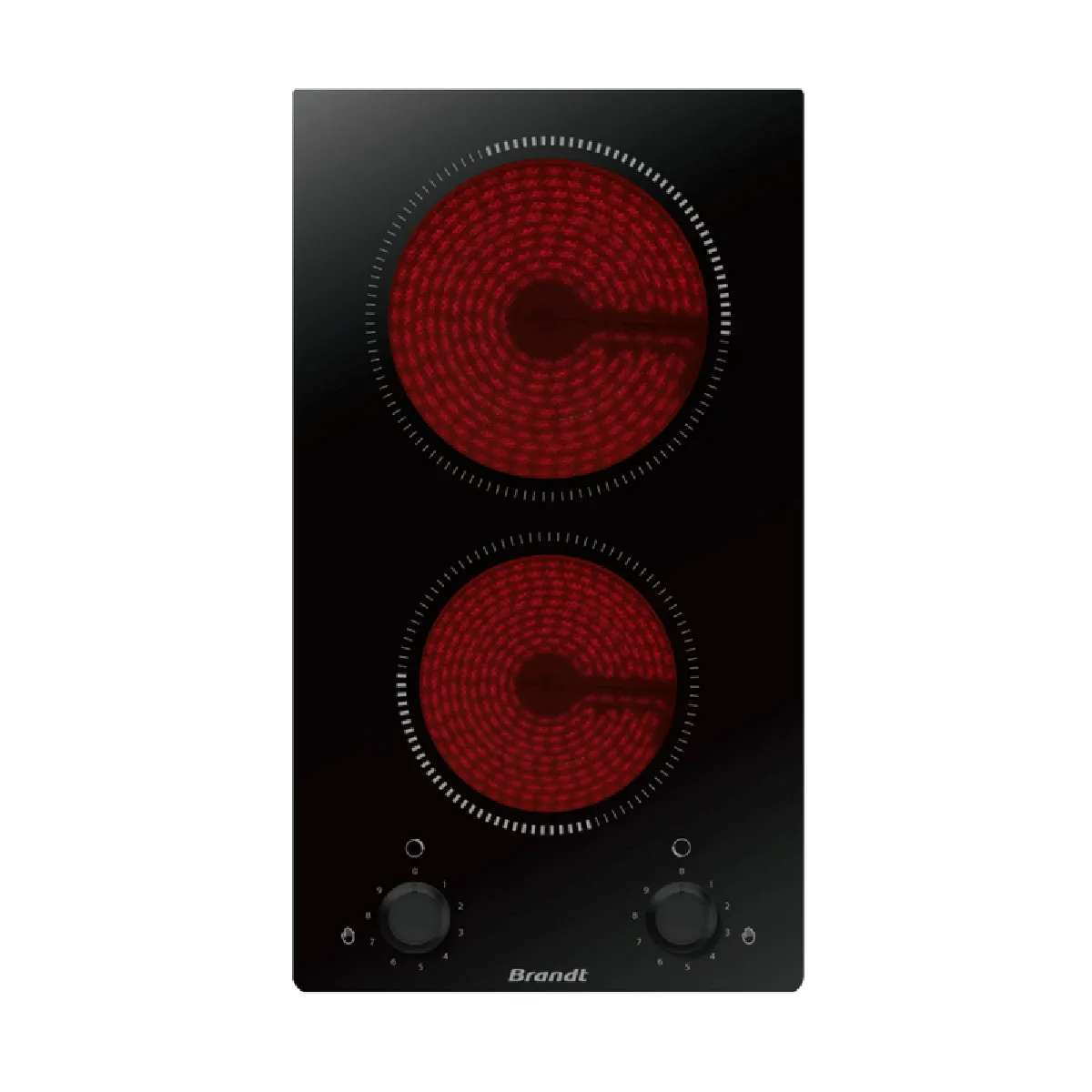 Table vitrocéramique 30 cm à 2 foyers, commandes frontales