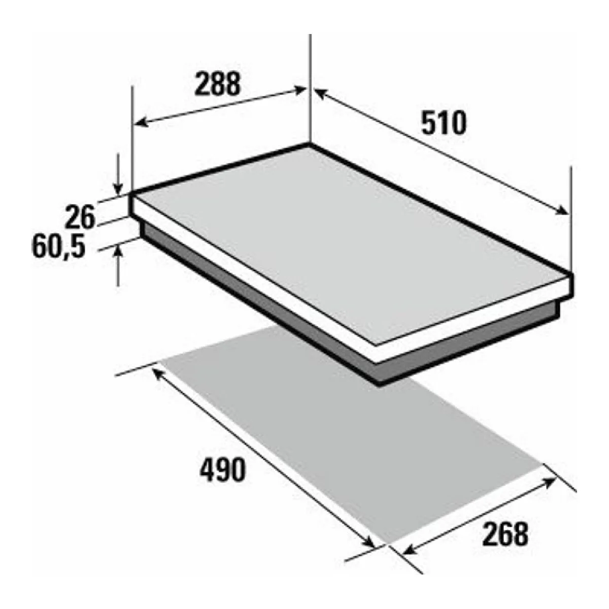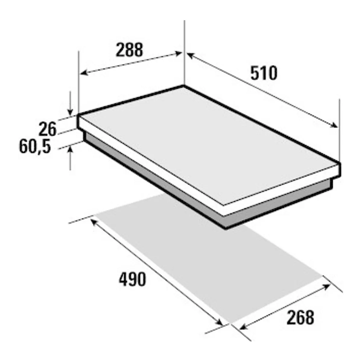 - Dimensions d'encastrement : 268 x 490 mm