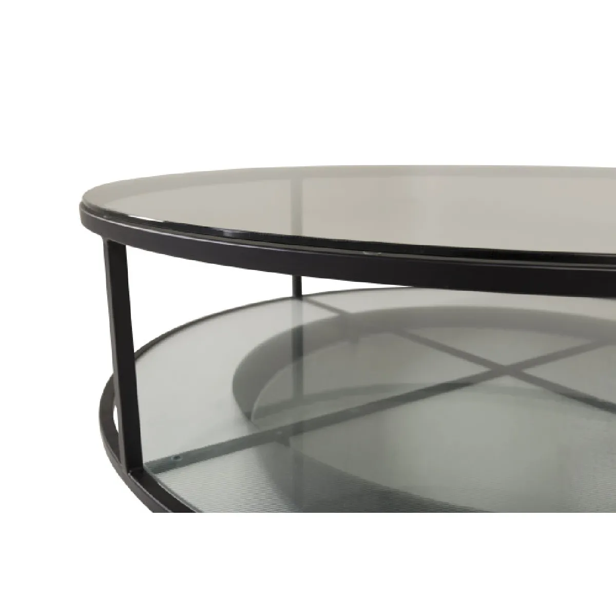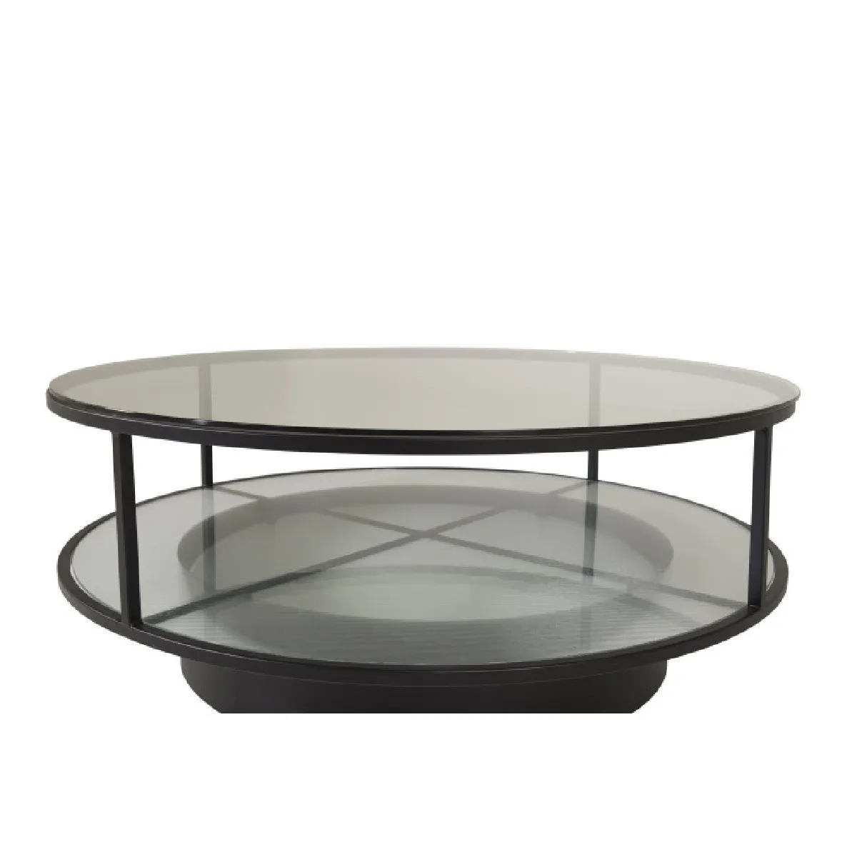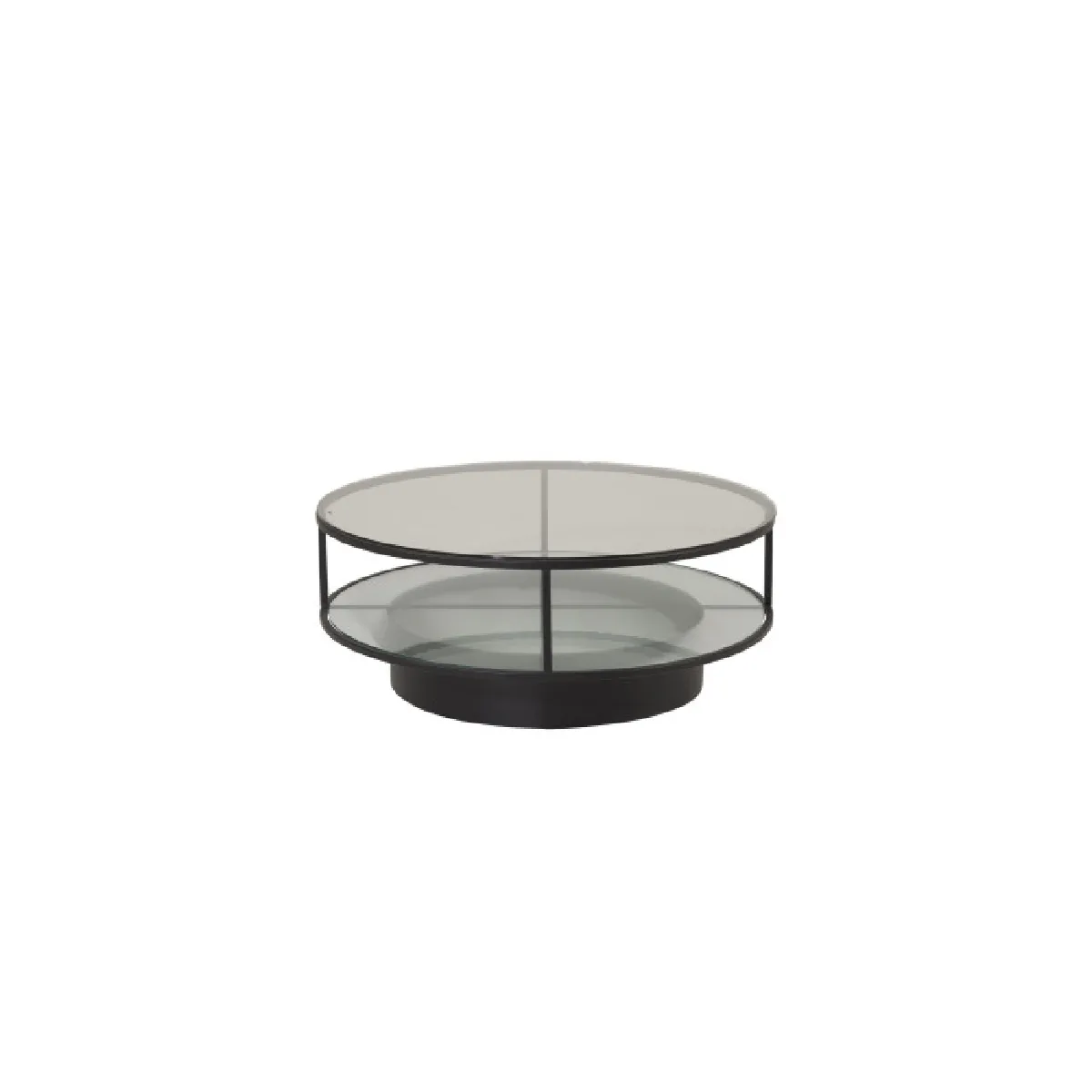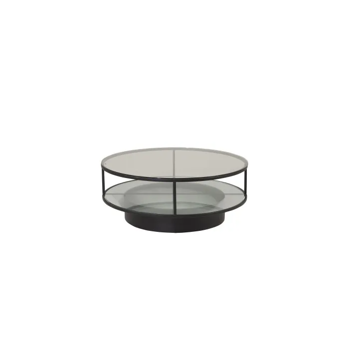 Son plateau rond de 100 cm en verre noir affirme une lecture claire des lignes et un style design qui s'accorde à des ambiances sobres ou plus chaleureuses. La finition transparente apporte un rendu visuel aérien qui agrandit la perception de l'espace, tout en offrant une surface plane pour les objets du quotidien. La table s'intègre au centre d'un salon, près d'un tapis ou d'un fauteuil, pour accueillir boissons et petites décorations.