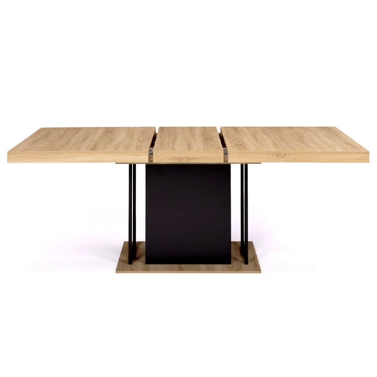 Table à manger extensible - 6-10 personnes - Bois effet hêtre et noir - Longueur 160-200 cm
