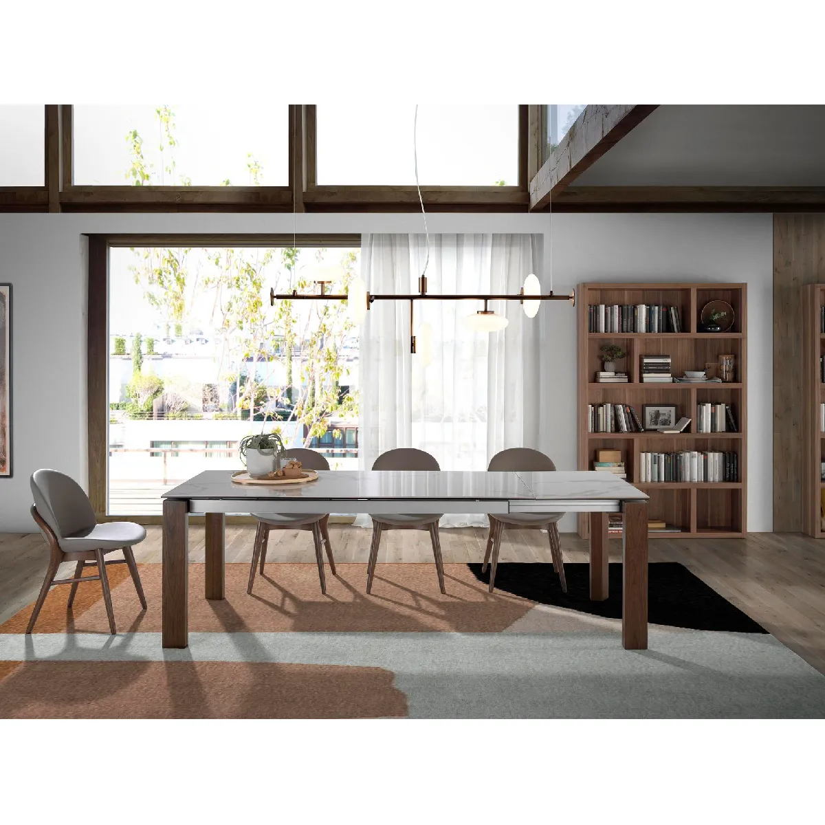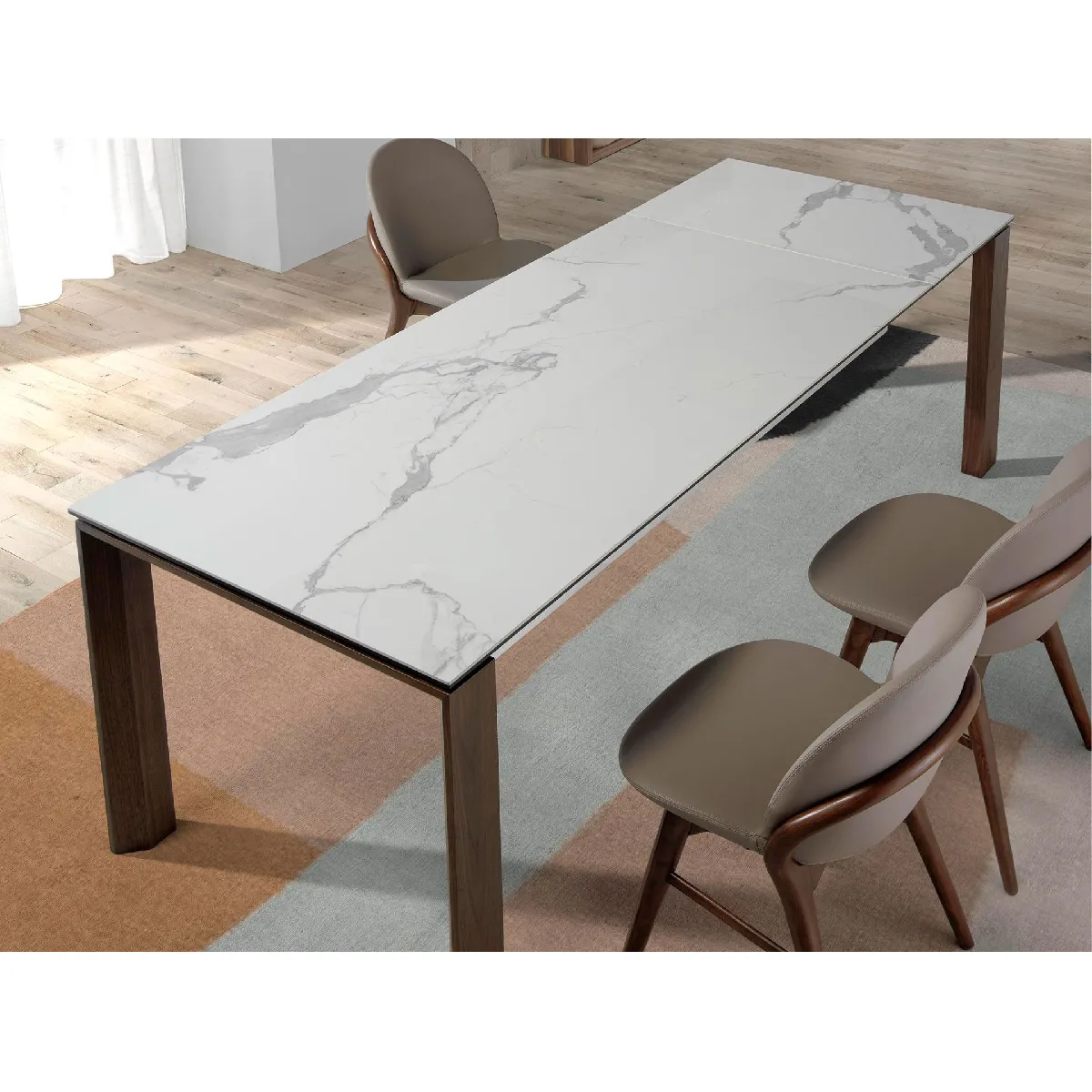 Table à manger à rallonge rectangulaire marbre porcelaine et noyer modèle 1095 Angel Cerdá S.L.