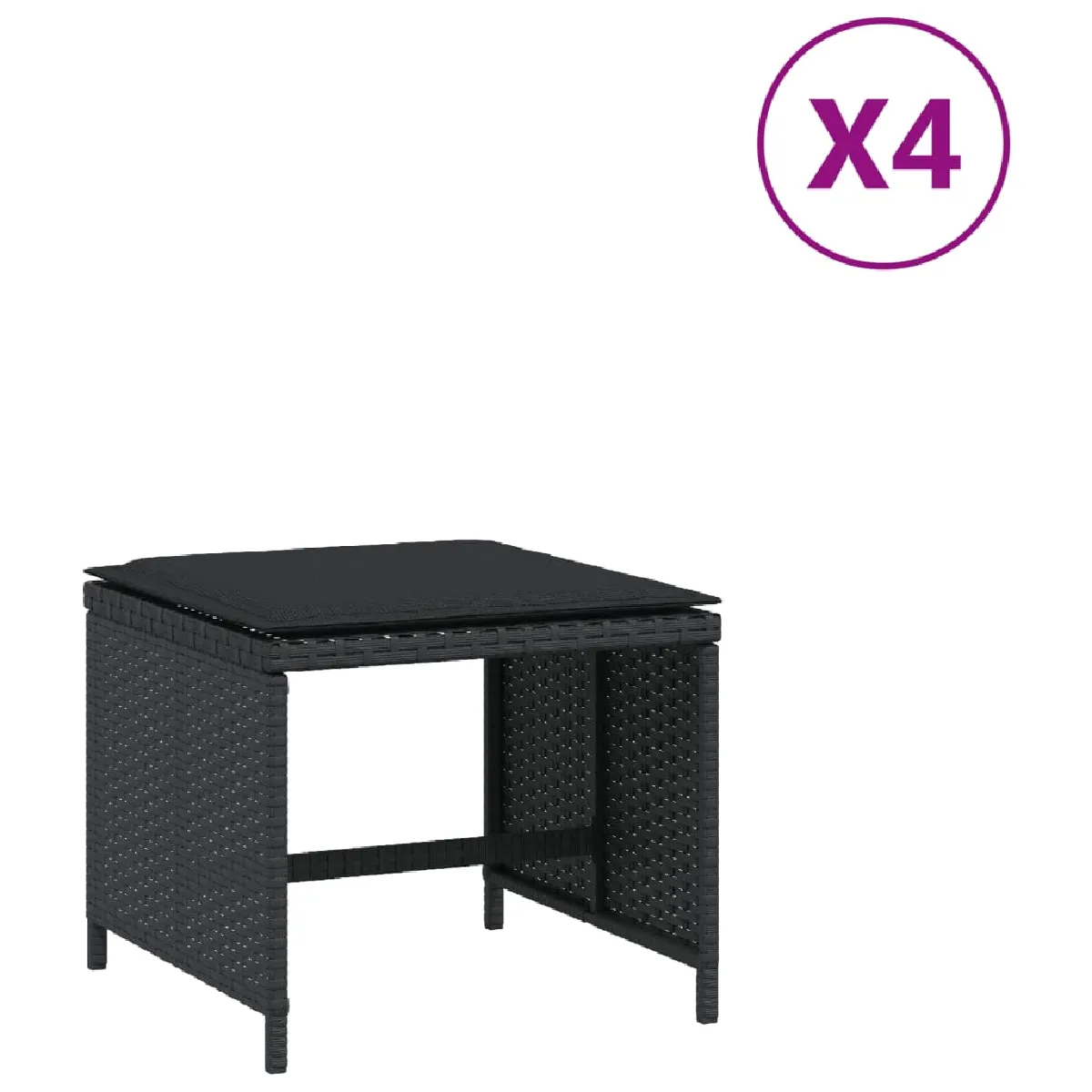 vidaXL Tabourets de jardin et coussins 4 pcs - Noir