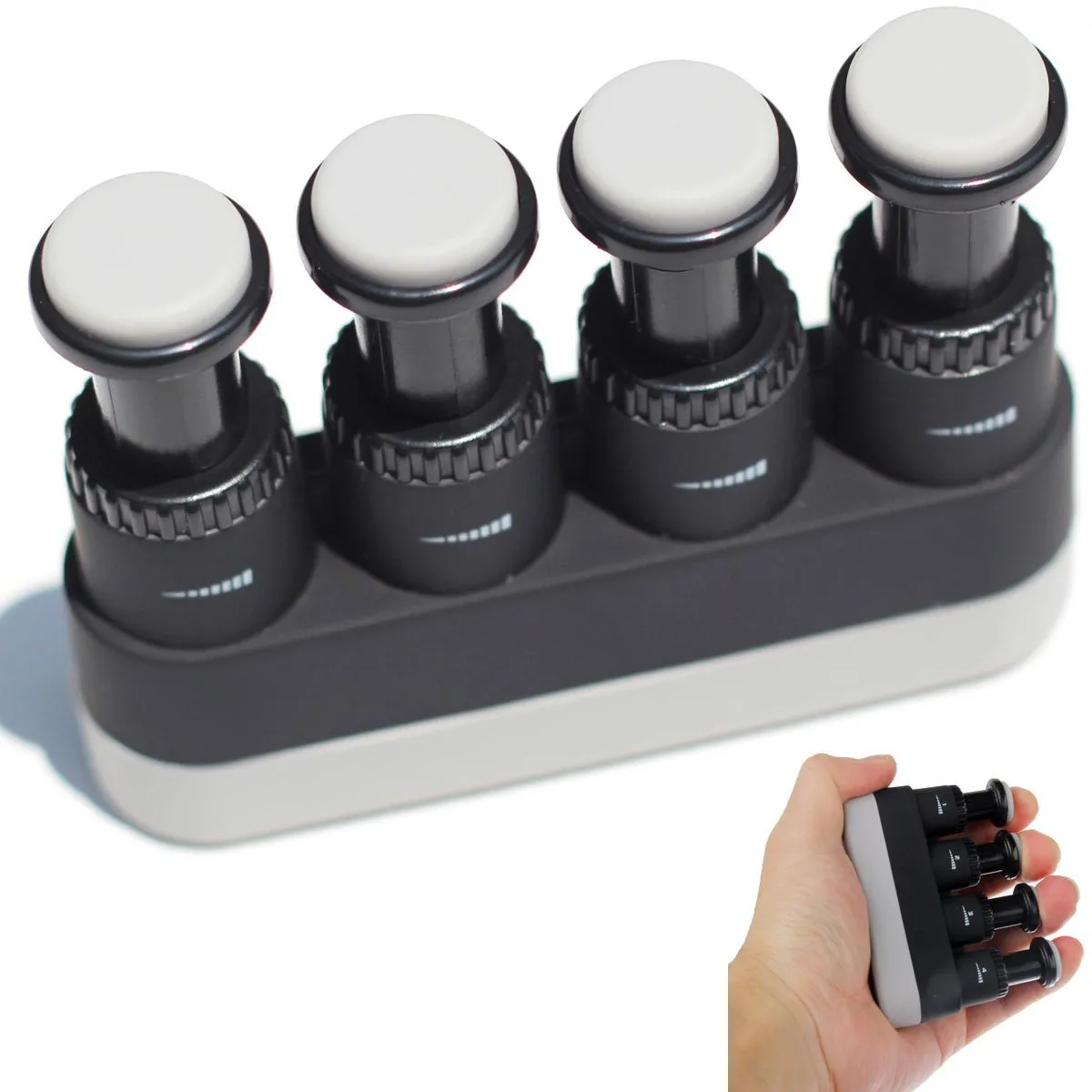 Voici un petit appareil aussi simple que génial ! Ce mini appareil d'exercice pour doigts va vous permettre d'entrainer vos doigts sans effort. En plaçant vos quatre doigts sur les emplacements prévus à cet effet, vous pourrez entrainer vos doigts. Selon le réglage, ce gadget améliorera la vitesse de vos doigts, mais aussi leur force et même l'indépendance entre eux.