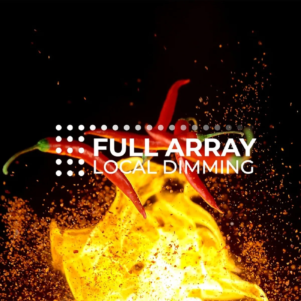 Full Array Local Dimming. Système de 144 LED qui rétroéclairent l`image avec précision, améliorant le contraste de l`écran pour une meilleure expérience.