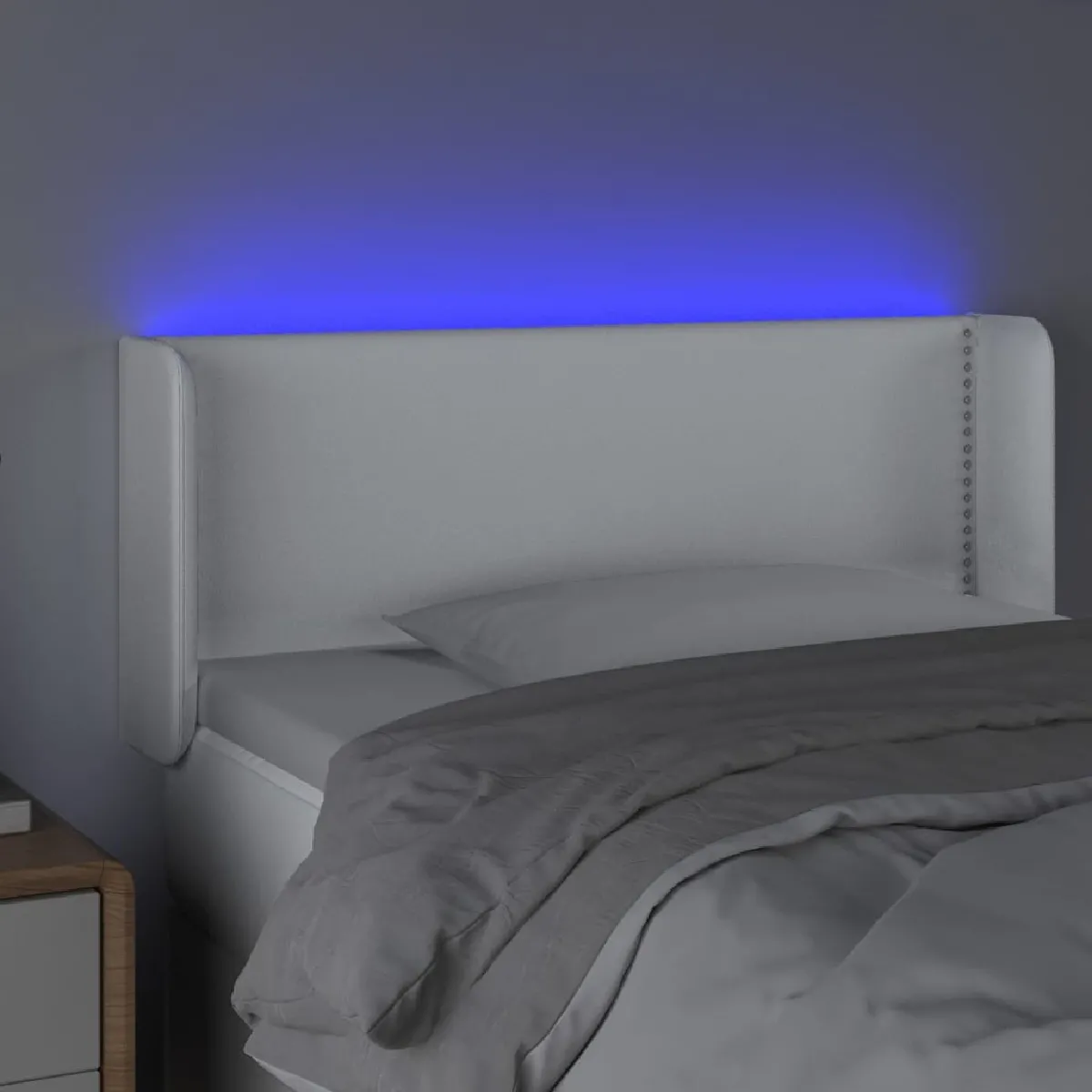 Commentaire vendeur : vidaXL Tête de lit à LED Blanc 103x16x78/88 cm Similicuir