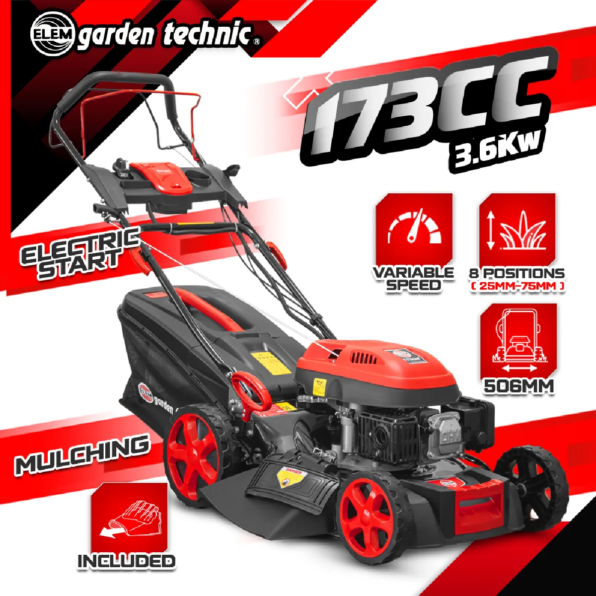 Tondeuse thermique autotractée - 173 cc - 50.6 cm - Bac 60 L - Mulching - Électrique